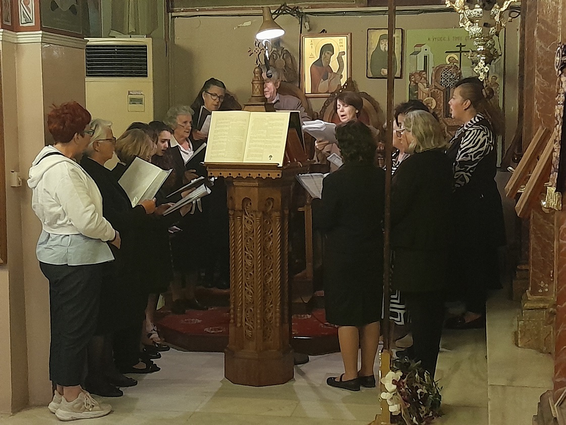 Τελέστηκε ο Όρθρος του Μεγάλου Σαββάτου, ενώ οι ψαλμωδίες από τα Στάσιμα «Η ζωή εν τάφω», «Άξιον εστί» και «Αι γενεαί πάσαι» ακούστηκαν από τον ιερέα π. Θεοδόση Αθανασόπουλο, τους ιεροψάλτες, την Χορωδία του Συλλόγου Γυναικών Καλυβίων, με Χοράρχη τον κ. Νίκο Στρατόπουλο και από άλλους συγχωριανούς μας, δίνοντας έτσι το μήνυμα της υπέρτατης θυσίας του Θεανθρώπου, που σταυρώθηκε, για να λυτρώσει τους ανθρώπους από την αμαρτία και το θάνατο.