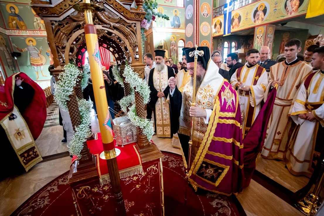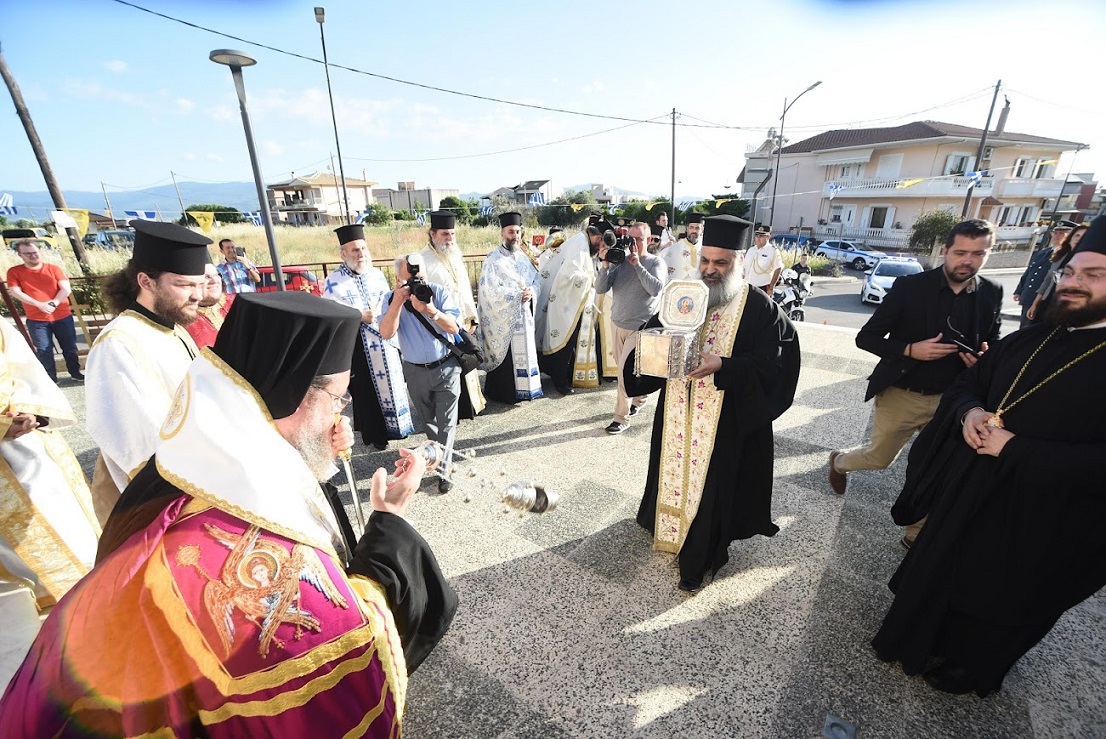 Εκ μέρους της Ενορίας ο Αρχιμ. Βασίλειος Αγγελάκης ευχαρίστησε τον Σεβασμιώτατο για την ευκαιρία να έρθει η Τιμία Κάρα στο Ναό που είναι αφιερωμένος