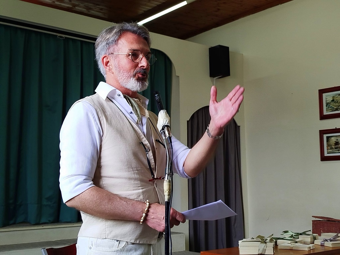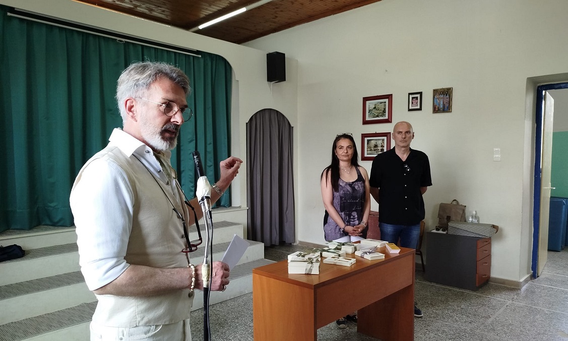 Με την ευχή εκ μέρους μου, οι πιο δυνατοί να συνεχίσουν να συνδράμουν τους πιο αδύναμους, με την ευχή σ΄ αυτόν τον όμορφο τόπο να συνεχίσετε να αγαπάτε και να στηρίζετε την λογοτεχνία, τα βιβλία και την διάδοση της γνώσης, παραδίδω πολύ συγκινημένος τα χορηγούμενα βιβλία μου στα χέρια αυτής της άξιας παιδαγωγού, της κας Ζάχαρη και των υπολοίπων συναδέλφων της, ελπίζοντας να συνεχίσετε πιο θερμά και στον εξοπλισμό της βιβλιοθήκης του Σχολείου Δοκιμίου».