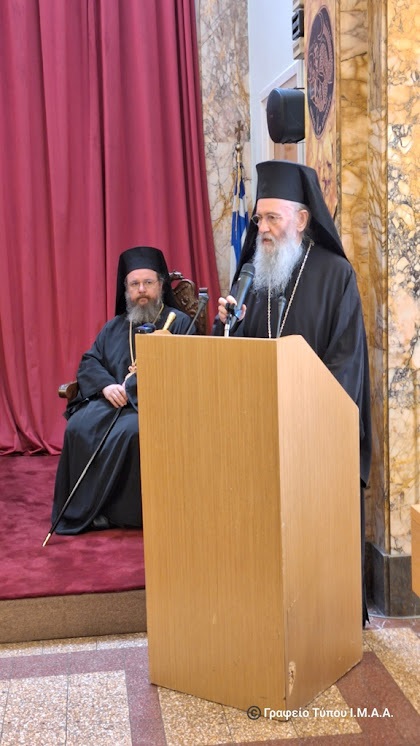 Εὐχαριστῶ καί τόν Σεβασμιώτατο Μητροπολίτη Αἰτωλίας καί Ἀκαρνανίας κ. Δαμασκηνό γιά τήν εὐμενῆ ἀποδοχή τῆς ἀπόφασης αὐτῆς, ὅπως καί τόν Σεβασμιώτατο Μητροπολίτη Καστορίας κ. Καλλίνικο γιά τήν παρουσία του, καί τούς παρόντας γνωστούς καί φίλους, ἰδιαιτέρως τόν παλαιό φίλο μου Παναγιώτη Καραγιῶργο.