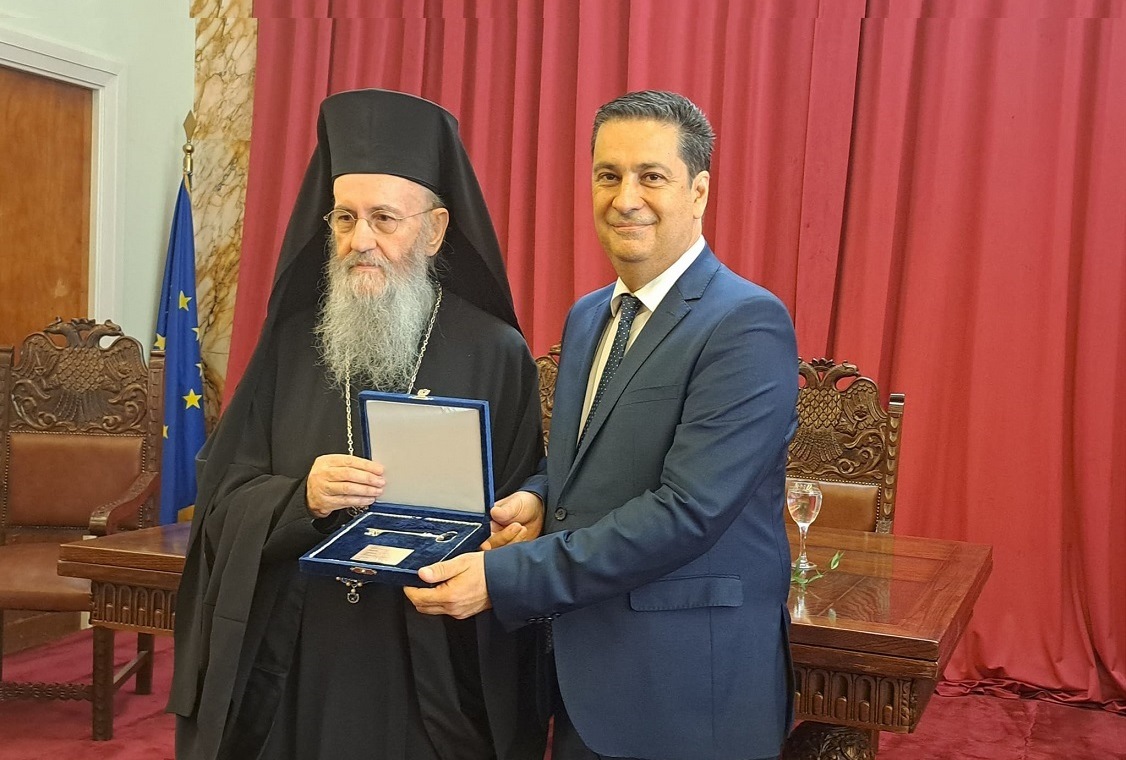 Ο κ. Ιερόθεος παρέλαβε το κλειδί της πόλης από τον Δήμαρχο Αγρινίου και ευχαρίστησε για την τιμή.