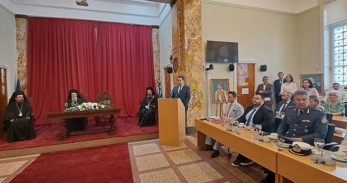Κύριε Δήμαρχε, κύριοι Πρόεδρε, Ἀντιδήμαρχοι καί Μέλη τοῦ Δημοτικοῦ Συμβουλίου τῆς πόλεως Ἀγρινίου, Σεβ. Μητροπολίτα Αἰτωλίας καί Άκαρνανίας κ. Δαμασκηνέ, Σεβ. Μητροπολίτα Καστορίας κ. Καλλίνικε, ἀξιότιμε Γενικέ Γραμματέα, εκπρόσωπε τῆς Κυβερνήσεως, κύριοι Δήμαρχοι Ναυπάκτου, Θέρμου, Ἀστακοῦ καί Ξηρομέρου, γενναιότατοι ἐκπρόσωποι των Ἐνόπλων Δυνάμεων καί τῶν Σωμάτων Ἀσφαλείας.