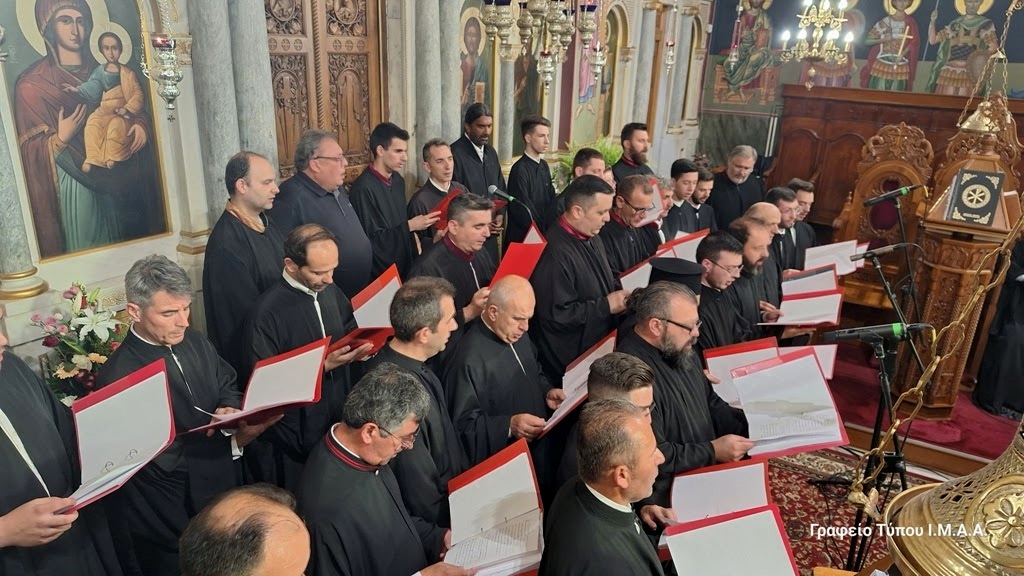 Η Χορωδία του Συλλόγου, υπό την διεύθυνση του Πρωτοψάλτη κ. Ανδρέα Φούκα, Καθηγητή Βυζαντινής Μουσικής και Προέδρου του Συλλόγου, έψαλλε Ύμνους της εορτής της Πεντηκοστής.