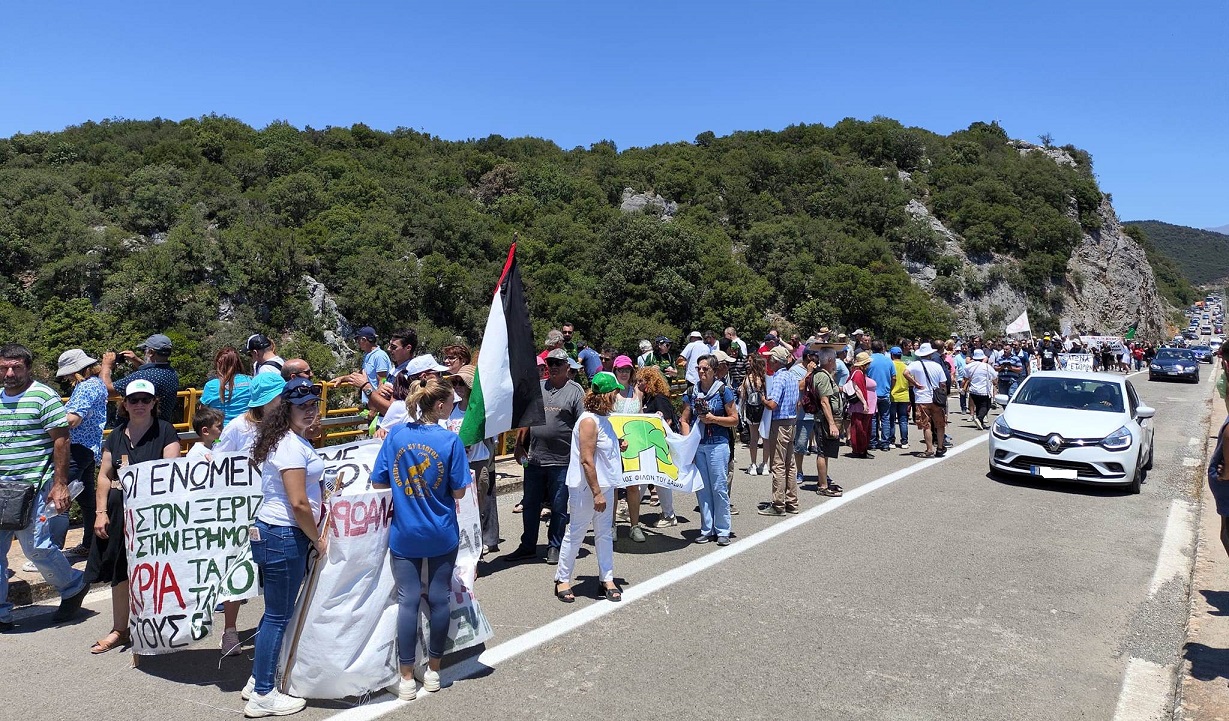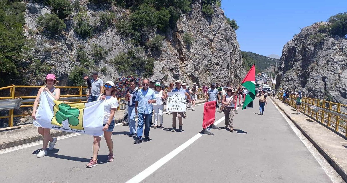 Μετά τις ομιλίες οι διοργανωτές μαζί με τους πολίτες έκαναν πορεία κρατώντας πανό και φωνάζοντας συνθήματα, διασχίζοντας την γέφυρα και επιστρέφοντας στο σημείο της συγκέντρωσης.