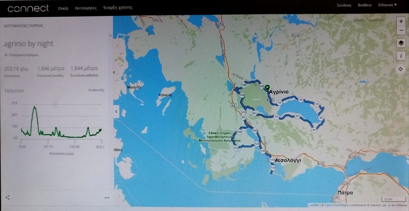 Εκκίνηση – Τερματισμός Άγιος Κωνσταντίνος (Καφέ Scoufaki), εθνική οδός Αγρινίου – Αντιρρίου, Παναιτώλιο, Καινούργιο, Παραβόλα, Θέρμο, Πετροχώρι, Σιταράλωνα, Κάτω Μακρινού, παραλίμνια οδός Μακρυνείας, Ζευγαράκι, Λυσιμαχεία, Αγγελόκαστρο, παραλία Σταμνάς, Γουριά, Πεντάλοφος, Λεσίνι, Κατοχή, Αιτωλικό, Μεσολόγγι, διαδρομή προς νησάκι Τουρλίδας (αναστροφή) Μεσολόγγι, Κεφαλόβρυσο Αιτωλικού, Χαλίκι, Αγγελόκαστρο, Καλύβια, οικισμός Αγίου Γεωργίου, γέφυρα ΔΕΗ στον Αχελώο, Όχθια, Στράτου, Γέφυρα Αχελώου, Νεάπολη, Διαμαντέϊκα, Άγιος Κωνσταντίνος (Αγρίνιο).