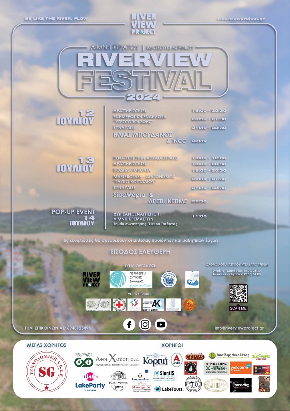 Ο Ιούλιος έφτασε και μπαίνουμε σιγά σιγά στην τελική ευθεία για το Riverview Festival 2024. Στις 12 & 13 Ιουλίου στο καθιερωμένο πλέον σημείο στο Ματσούκι Αγρινίου, στην όχθη της τεχνητής λίμνης Στράτου του Αχελώου μας, θα λάβει χώρα ένα από τα πλέον αγαπημένα καλοκαιρινά δρώμενα για την πόλη μας.