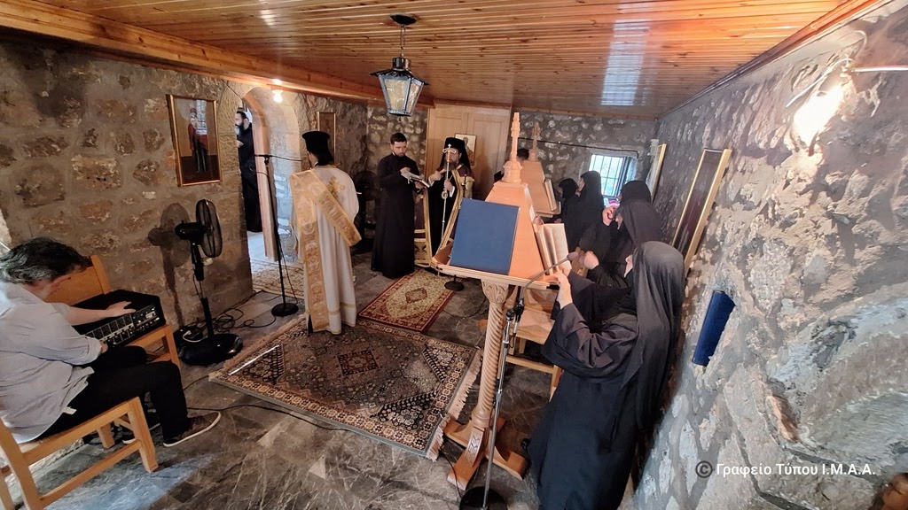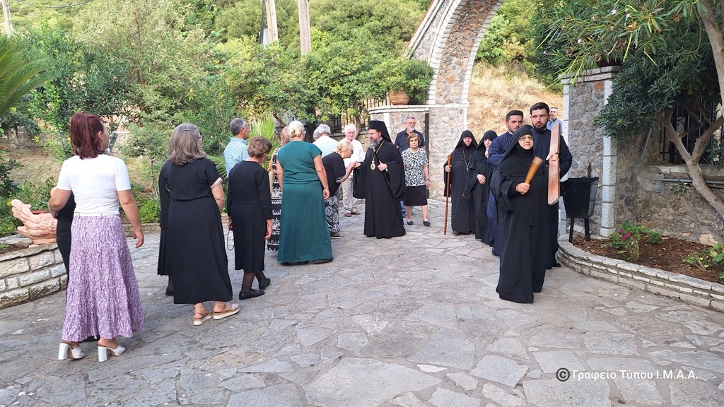 Ολοκληρώνοντας το κήρυγμά του, ο Σεβασμιώτατος αναφέρθηκε στην εορτάζουσα Γερόντισσα Μακρίνα, προς την οποία ευχήθηκε τα δέοντα, λέγοντας τα εξής: «Αυτόν τον δρόμο και αυτόν τον βίο επέλεξε να ακολουθήσει και η εορτάζουσα σήμερα τα ονομαστήριά της Αγία Καθηγουμένη και πνευματική μητέρα αυτού του Ιερού Κοινοβίου, Γερόντισσα Μακρίνα. Εκφράζοντας τις ευχές των λειτουργών και των συμπροσευχομένων Πατέρων, αλλά και όλων σας, αισθάνομαι την ανάγκη να της ευχηθώ από τα βάθη της καρδιάς μου, να αξιωθεί να εισέλθει εις τους γάμους μετά του Νυμφίου Χριστού. Να την αξιώνει ο Θεός πάντοτε να έχει επάρκεια ελέους και αγάπης, φιλανθρωπίας και φιλευσπλαχνίας, έτσι ώστε η λαμπάδα της μοναχικής της ζωής να λάμπει πάντα και το φως που θα ακτινοβολεί ο μοναχικός της αγώνας, να την καθιστά αναγνωρίσιμη υπό του Κυρίου, ο Οποίος με τις προσευχές όλων μας, να την επιλέξει για να εισέλθει στην οικία του γάμου, δηλαδή στην επουράνιο Βασιλεία και εκεί να βιώσει και να απολαύσει μαζί με την προστάτη και έφορό της, Αγία Μακρίνα, «ἃ ὀφθαλμὸς οὐκ εἶδε καὶ οὖς οὐκ ἤκουσε καὶ ἐπὶ καρδίαν ἀνθρώπου οὐκ ἀνέβη∙ ἃ ἡτοίμασεν ὁ Θεὸς τοῖς ἀγαπῶσιν αὐτόν».