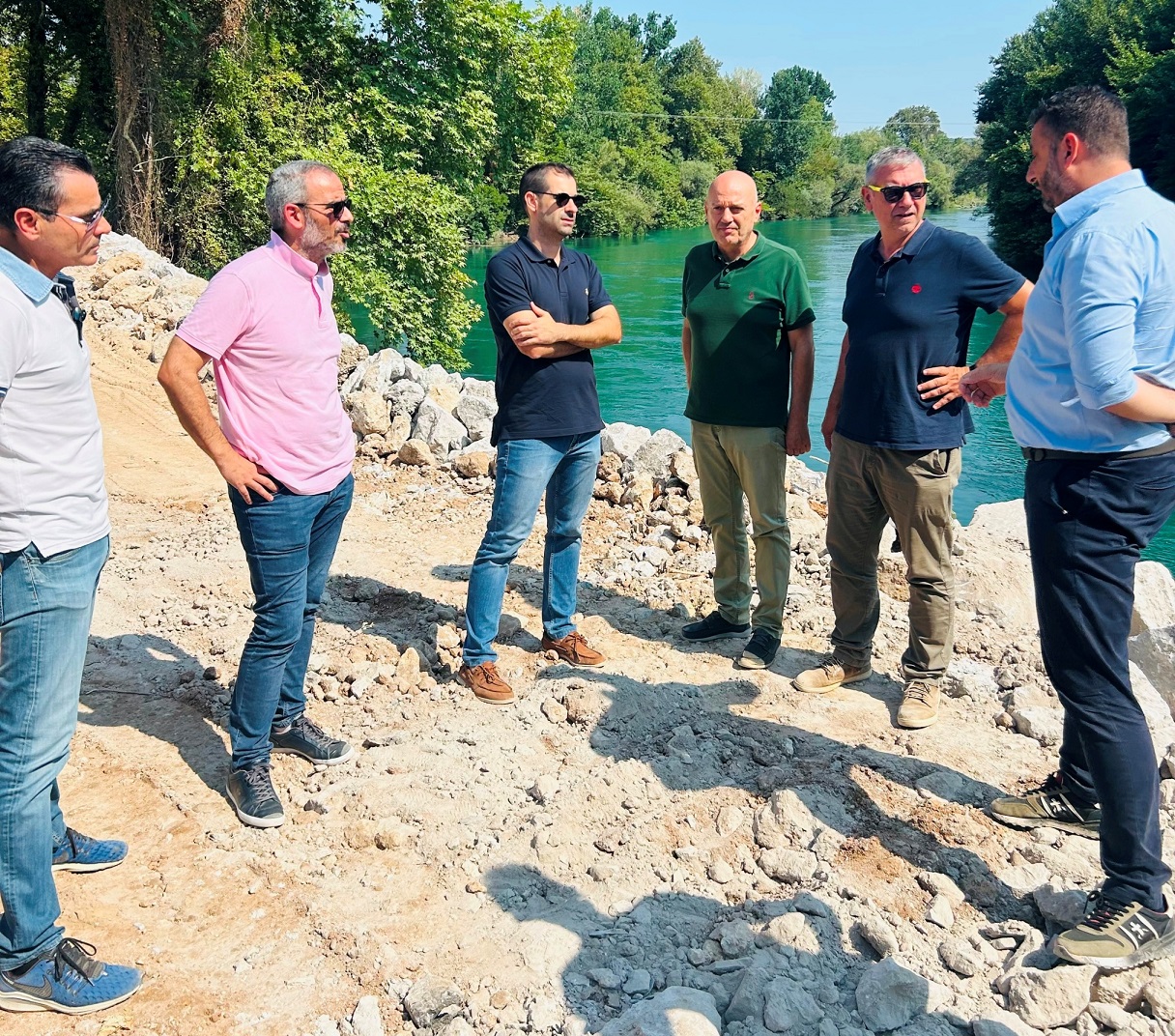 Κατά την διάρκεια της επίσκεψης, οι κ.κ Γιαννόπουλος και Μαυρομμάτης, επισκέφθηκαν και την Κοινότητα Πενταλόφου στον Δήμο Ι.Π. Μεσολογγίου, όπου βρίσκονται σε εξέλιξη οι εργασίες συντήρησης και αποκατάστασης του αντιπλημμυρικού έργου στον ποταμό Αχελώο, για την αντιπλημμυρική θωράκιση του οικισμού, των υποδομών αλλά και των παρόχθιων καλλιεργειών. Για τις παρεμβάσεις που έχουν γίνει και για τα όσα προβλέπονται συνολικά στην περιοχή, ενημερώθηκαν από τον Διευθυντή Τεχνικών Έργων ΠΔΕ Χρήστο Καραγιάννη, από τον Προϊστάμενο Δομών Περιβάλλοντος της ίδιας Διεύθυνσης, Θεόδωρο Θανασούλια και από τους εκπροσώπους της αναδόχου. Ειδικότερα, το ανάχωμα του ποταμού και στα δυο σημεία των παρεμβάσεων, εντός των γεωγραφικών ορίων του Πενταλόφου, έχει υποστεί βλάβες και υποσκαφές, για την αντιμετώπιση των οποίων πραγματοποιούνται εργασίες απομάκρυνσης της βλάστησης, διάνοιξη διαύλου εκτόνωσης της ροής του ποταμού και επαναφοράς του στην πρότερη κατάσταση καθώς και αποκατάσταση των λιθορριπών προστασίας του αναχώματος.