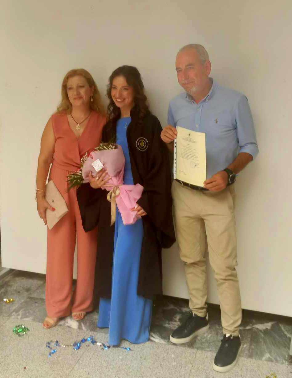 Μαζί της σε αυτή την σημαντική μέρα ήταν και οι υπερήφανοι γονείς της, Χαράλαμπος, από τα Καλύβια Αγρινίου και Ελένη, από την Αταλάντη Φθιώτιδας, οι οποίοι βρέθηκαν κοντά της για να την στηρίξουν και να τις ευχηθούν για την επιτυχή ολοκλήρωση των σπουδών της!