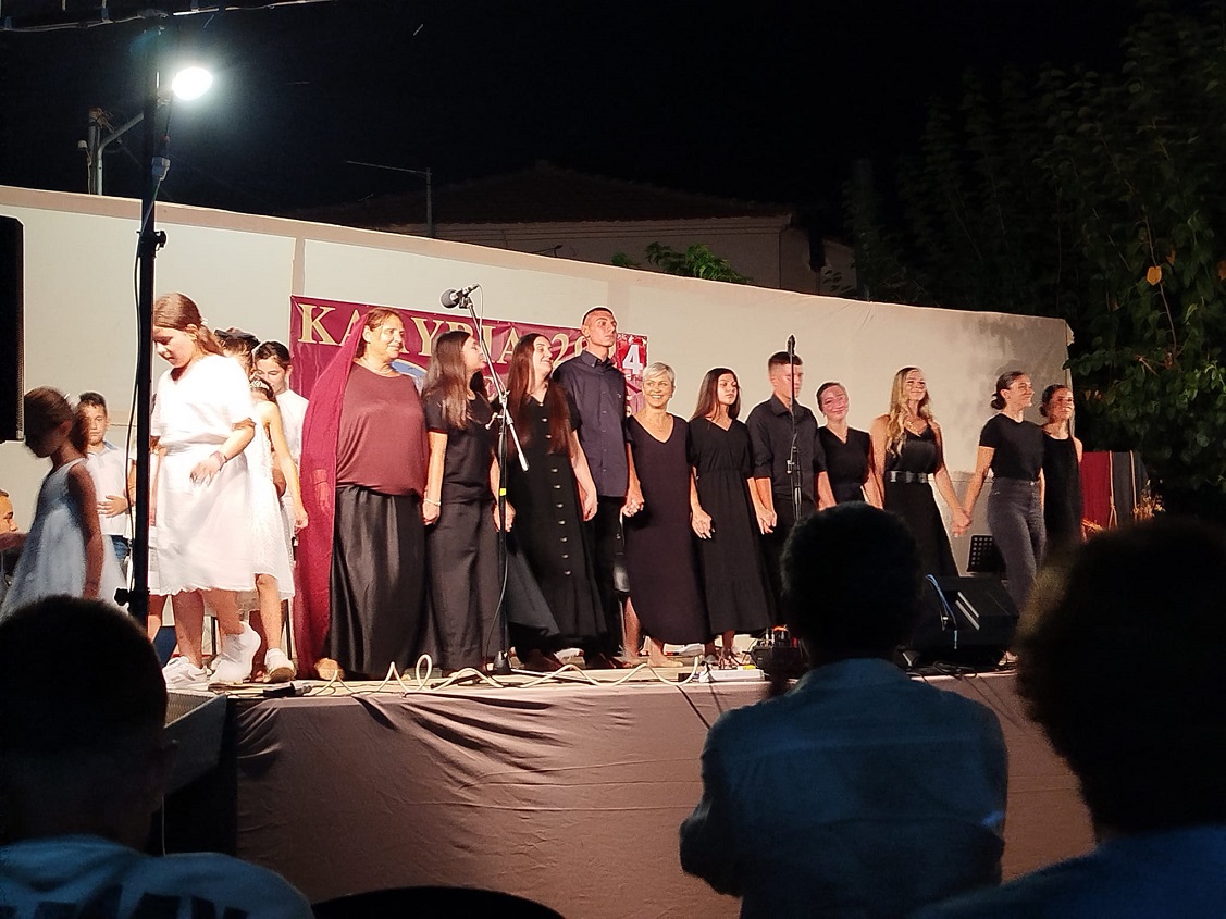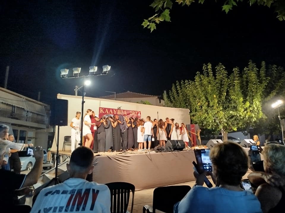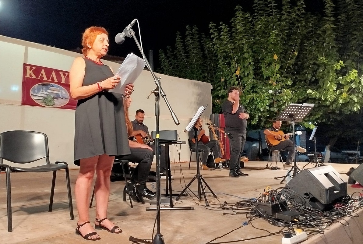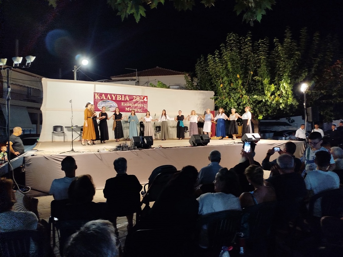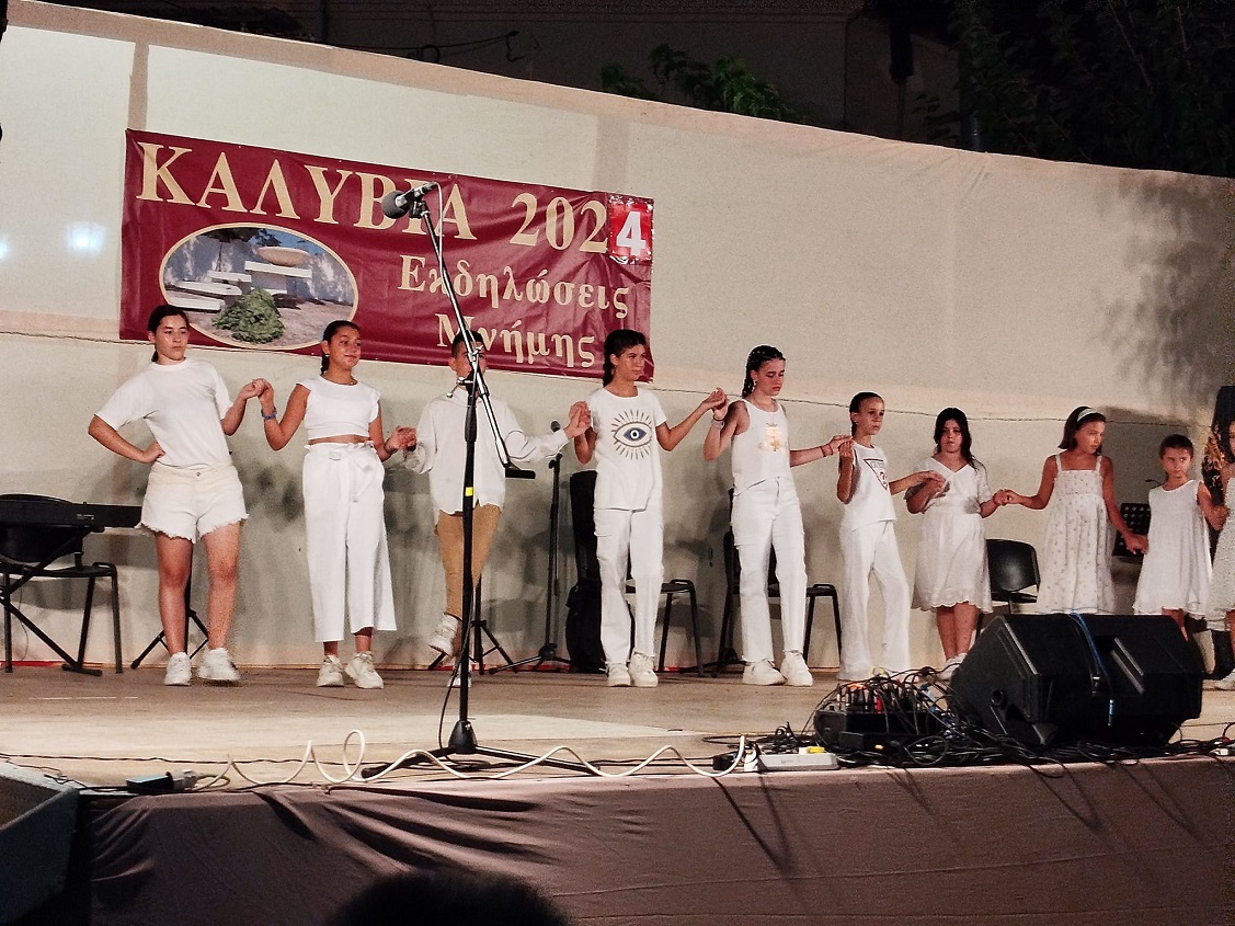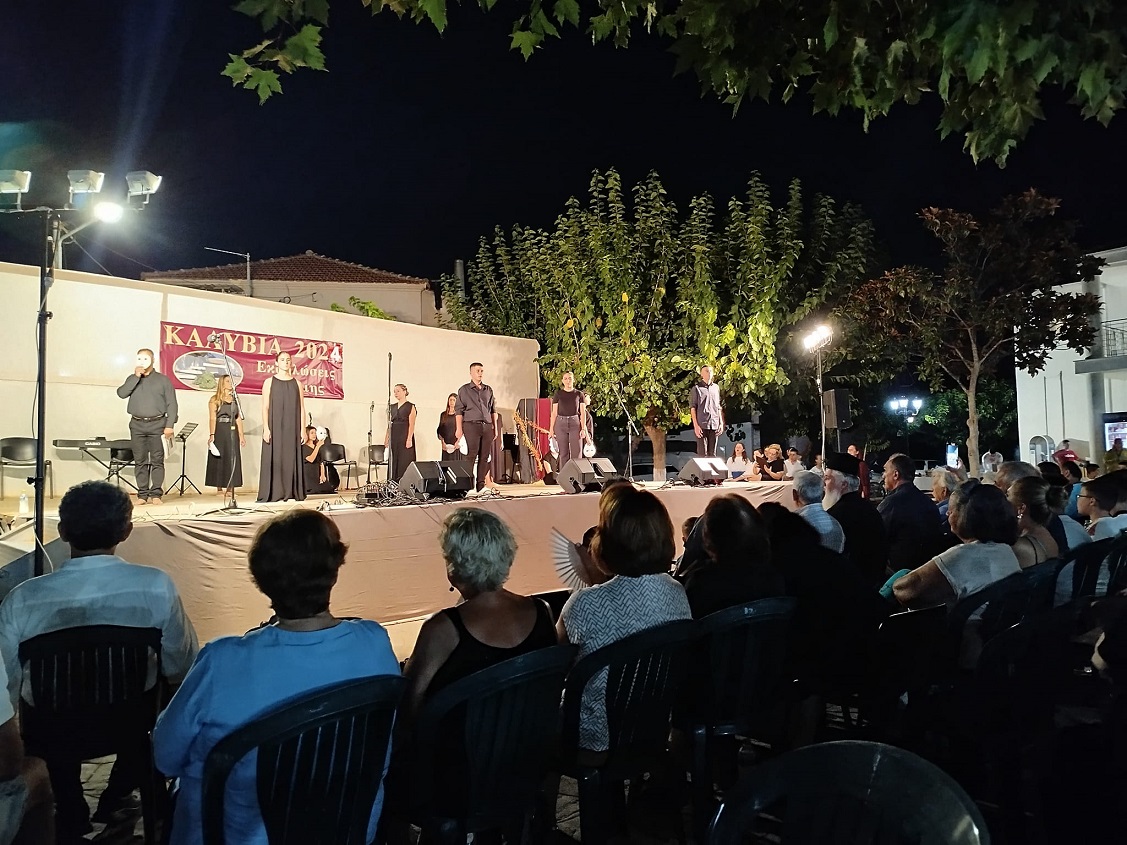 Πολλοί συγχωριανοί μας και επισκέπτες παρακολούθησαν μια εκδήλωση που συγκίνησε με τη θεματολογία της αλλά ήταν ταυτόχρονα στο πνεύμα και το ύφος τιμής και μνήμης των 59 πατριωτών που εκτελέστηκαν από τις δυνάμεις της Γερμανικής Κατοχής, την 31η Ιουλίου 1944 στα Καλύβια.