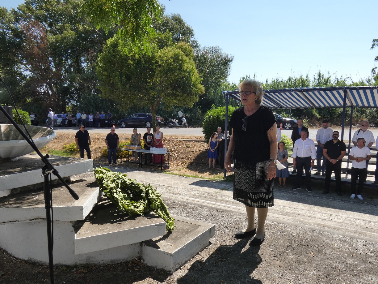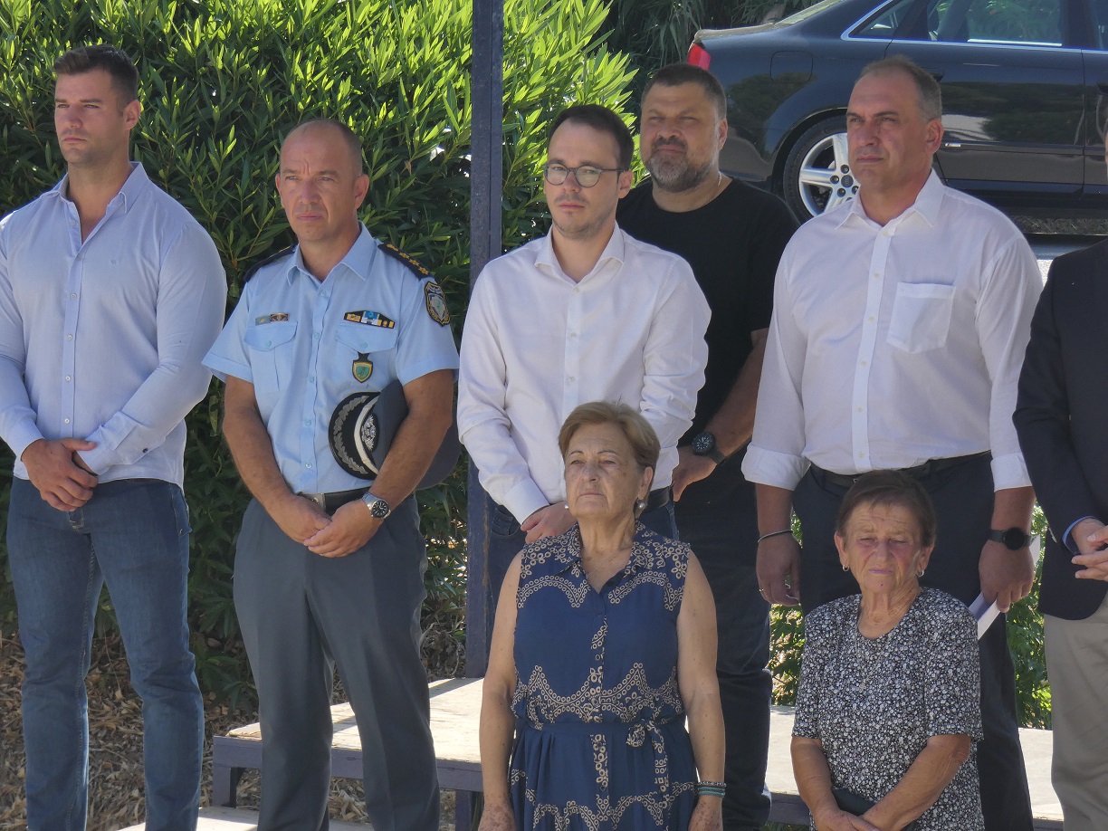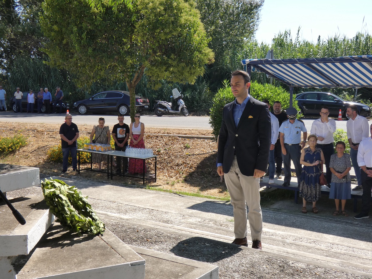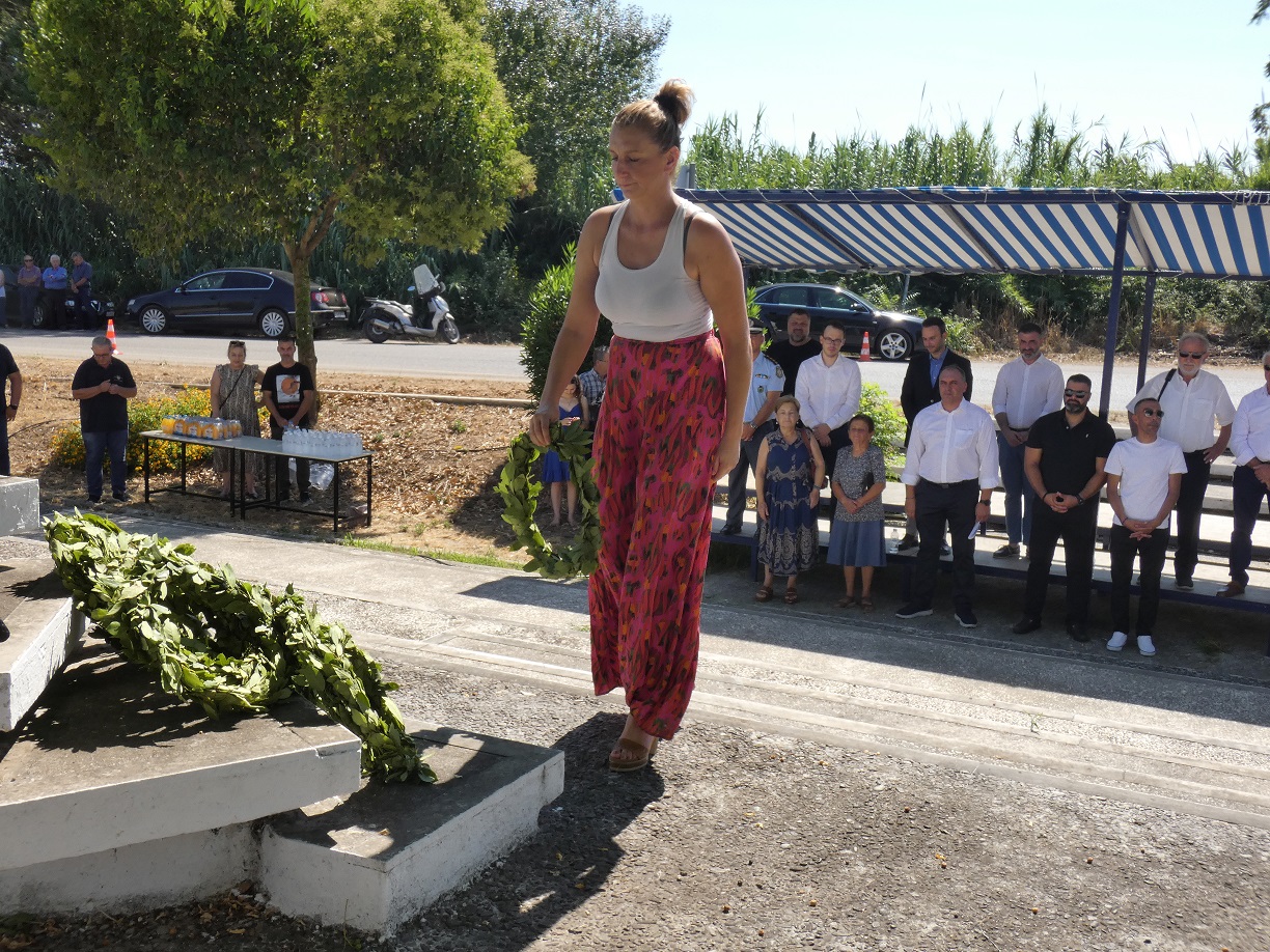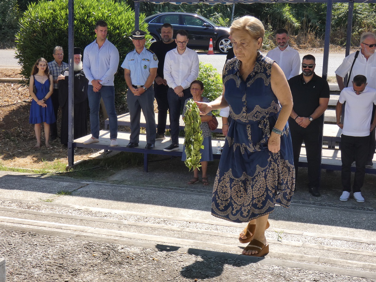 Από τον Αντιδήμαρχο Αγρινίου, Παναγιώτη Μαρνέζο, από τον Πρόεδρο του Δημοτικού Συμβουλίου Αγρινίου, Κωνσταντίνο Ζώη, τον Πρόεδρο της Κοινότητας Καλυβίων, Δημήτρη Αναστασίου, τον βουλευτή του ΣΥΡΙΖΑ, Μίλτο Ζαμπάρα, τον εκπρόσωπο της δημοτικής παράταξης ««Αγρίνιο, Πάμε Ψηλά» Δημήτρη Τριανταφυλλάκη, από τον Δημοτικό Σύμβουλο, ο οποίος εκπροσώπησε την Κοινότητα Αγγελοκάστρου, Παναγιώτη Γιαννιώτη, τον Αστυνομικό Διευθυντή Ακαρνανίας, Θεόδωρο Νταλαπέρα , από τον τοπικό Σύμβουλο της Κοινότητας Αγρινίου, Γιάννη Κατσάντα, από τον πρ. βουλευτή, Γιάννη Βαινά, από την Αντιπρόεδρο της Ιστορικής Αρχαιολογικής Εταιρείας Δυτ. Στερεάς Ελλάδας, Μαίρη Τσιχριτζή-Βαϊνά, την εκπρόσωπο του Χορευτικού Τμήματος Καλυβίων, Γ. Πούτα, την Πρόεδρο του Συλλόγου Γυναικών Σταμνάς, Γεωργία Κορδόση, από τον Δημοτικό Σύμβουλο, Γιάννη Καλλίμορφο, τον Ευάγγελο Καρακίτσο και άλλους συγγενείς των θυμάτων.