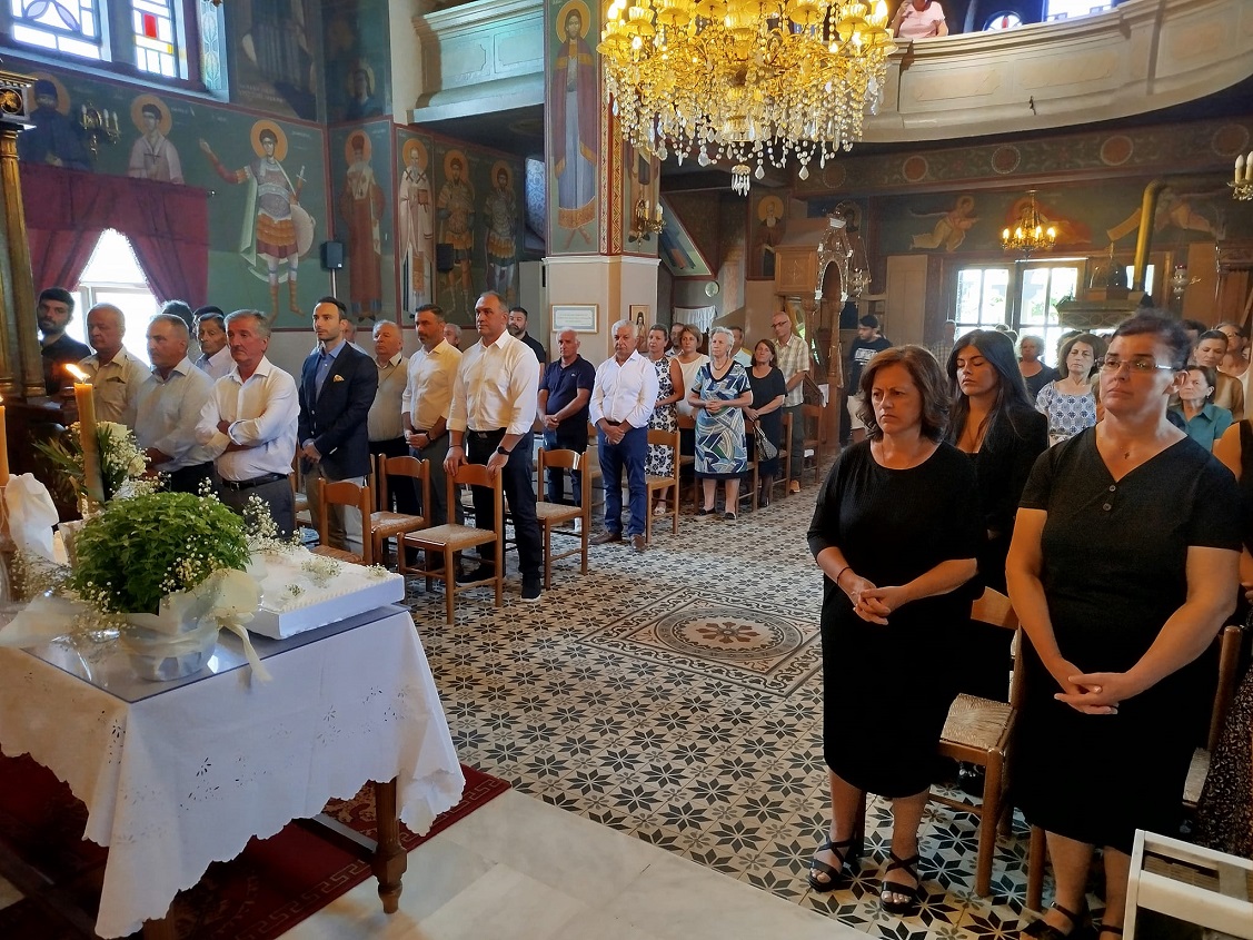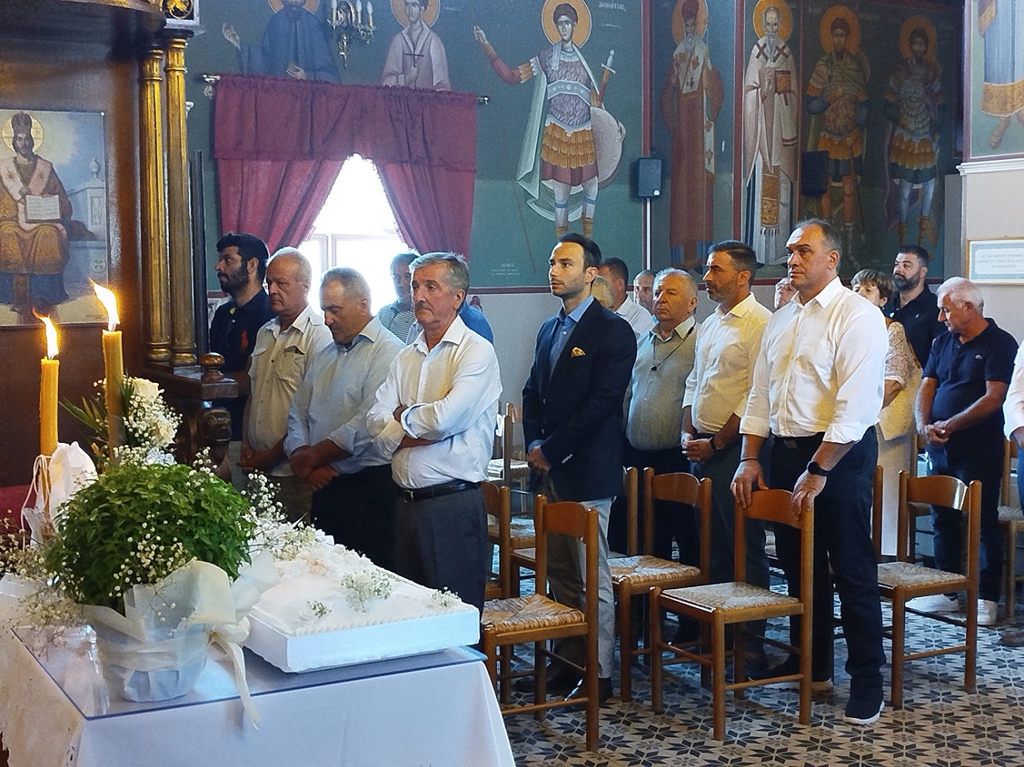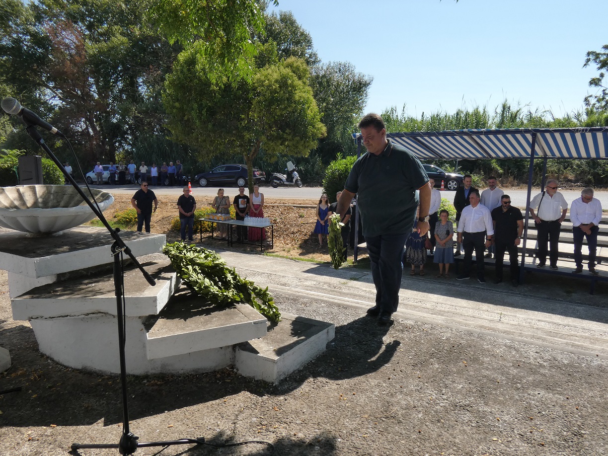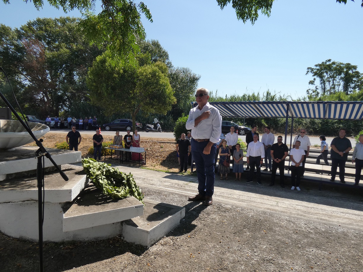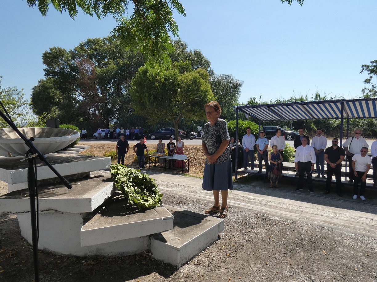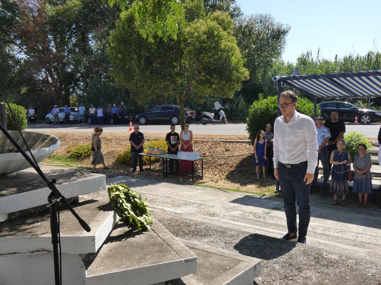 Από τον Αντιδήμαρχο Αγρινίου, Παναγιώτη Μαρνέζο, από τον Πρόεδρο του Δημοτικού Συμβουλίου Αγρινίου, Κωνσταντίνο Ζώη, τον Πρόεδρο της Κοινότητας Καλυβίων, Δημήτρη Αναστασίου, τον βουλευτή του ΣΥΡΙΖΑ, Μίλτο Ζαμπάρα, τον εκπρόσωπο της δημοτικής παράταξης ««Αγρίνιο, Πάμε Ψηλά» Δημήτρη Τριανταφυλλάκη, από τον Δημοτικό Σύμβουλο, ο οποίος εκπροσώπησε την Κοινότητα Αγγελοκάστρου, Παναγιώτη Γιαννιώτη, τον Αστυνομικό Διευθυντή Ακαρνανίας, Θεόδωρο Νταλαπέρα , από τον τοπικό Σύμβουλο της Κοινότητας Αγρινίου, Γιάννη Κατσάντα, από τον πρ. βουλευτή, Γιάννη Βαινά, από την Αντιπρόεδρο της Ιστορικής Αρχαιολογικής Εταιρείας Δυτ. Στερεάς Ελλάδας, Μαίρη Τσιχριτζή-Βαϊνά, την εκπρόσωπο του Χορευτικού Τμήματος Καλυβίων, Γ. Πούτα, την Πρόεδρο του Συλλόγου Γυναικών Σταμνάς, Γεωργία Κορδόση, από τον Δημοτικό Σύμβουλο, Γιάννη Καλλίμορφο, τον Ευάγγελο Καρακίτσο και άλλους συγγενείς των θυμάτων.