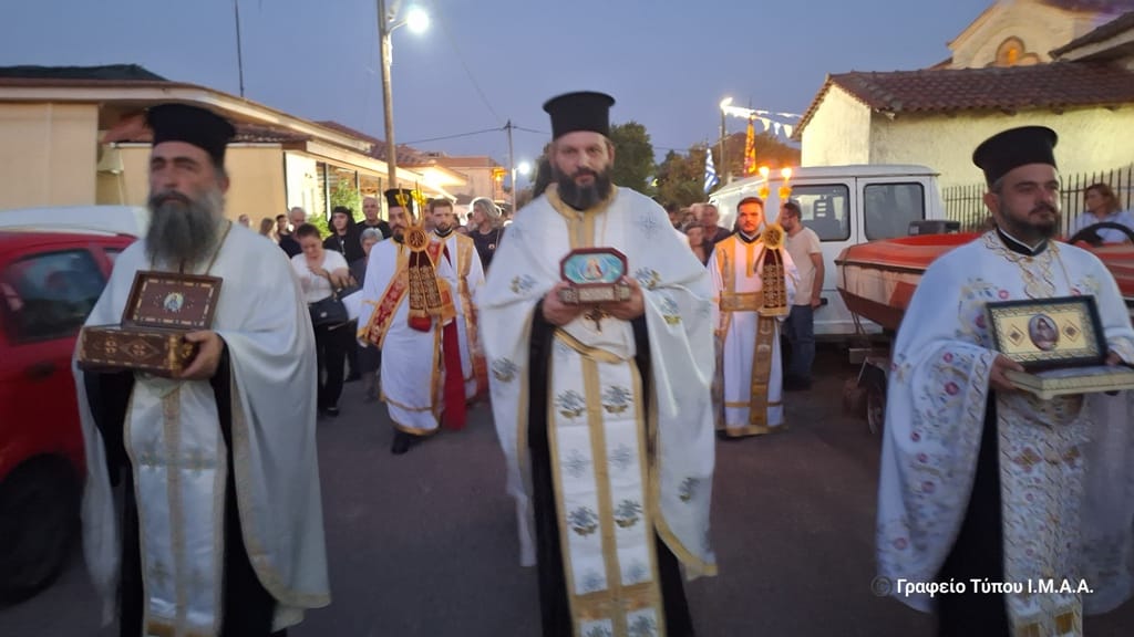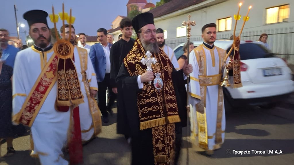Το απόγευμα της Παρασκευής 26ης Ιουλίου ο Σεβασμιώτατος Μητροπολίτης Αιτωλίας και Ακαρνανίας κ. Δαμασκηνός μετέβη στην Κυψέλη Αγρινίου και προεξήρχε του Πανηγυρικού Εσπερινού και της Λιτάνευσης της Ιεράς Εικόνος που ακολούθησε στους δρόμους του χωριού, με τη συνοδεία της Φιλαρμονικής του Δήμου Αγρινίου και των πολιτιστικών συλλόγων της τοπικής κοινότητας.