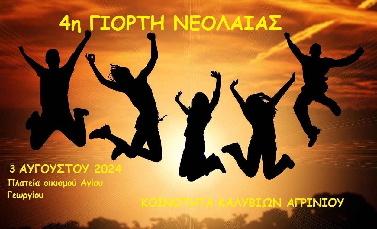 Η 4η Γιορτή Νεολαίας διοργανώνεται από την Κοινότητα Καλυβίων Αγρινίου, το επόμενο Σάββατο 3 Αυγούστου 2024, στις 8.30 το βράδυ, στην πλατεία του οικισμού Αγίου Γεωργίου, με την συμμετοχή παιδιών του χωριού μας και εθελοντών που συνδράμουν στην επιτυχή οργάνωσή της.