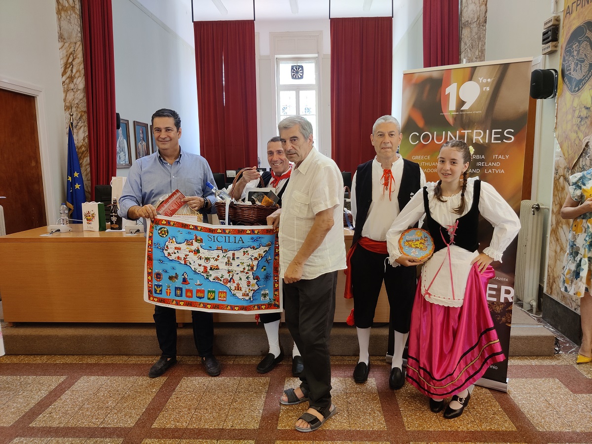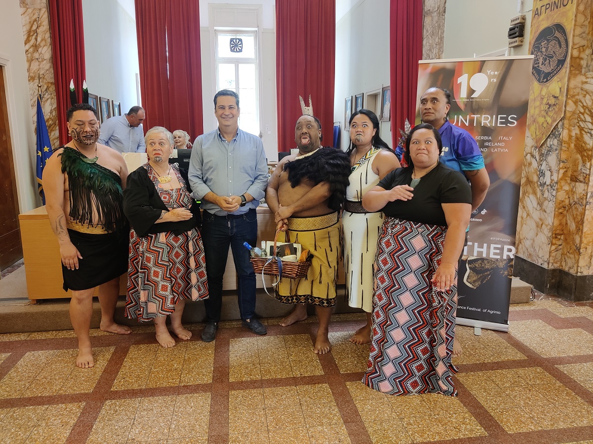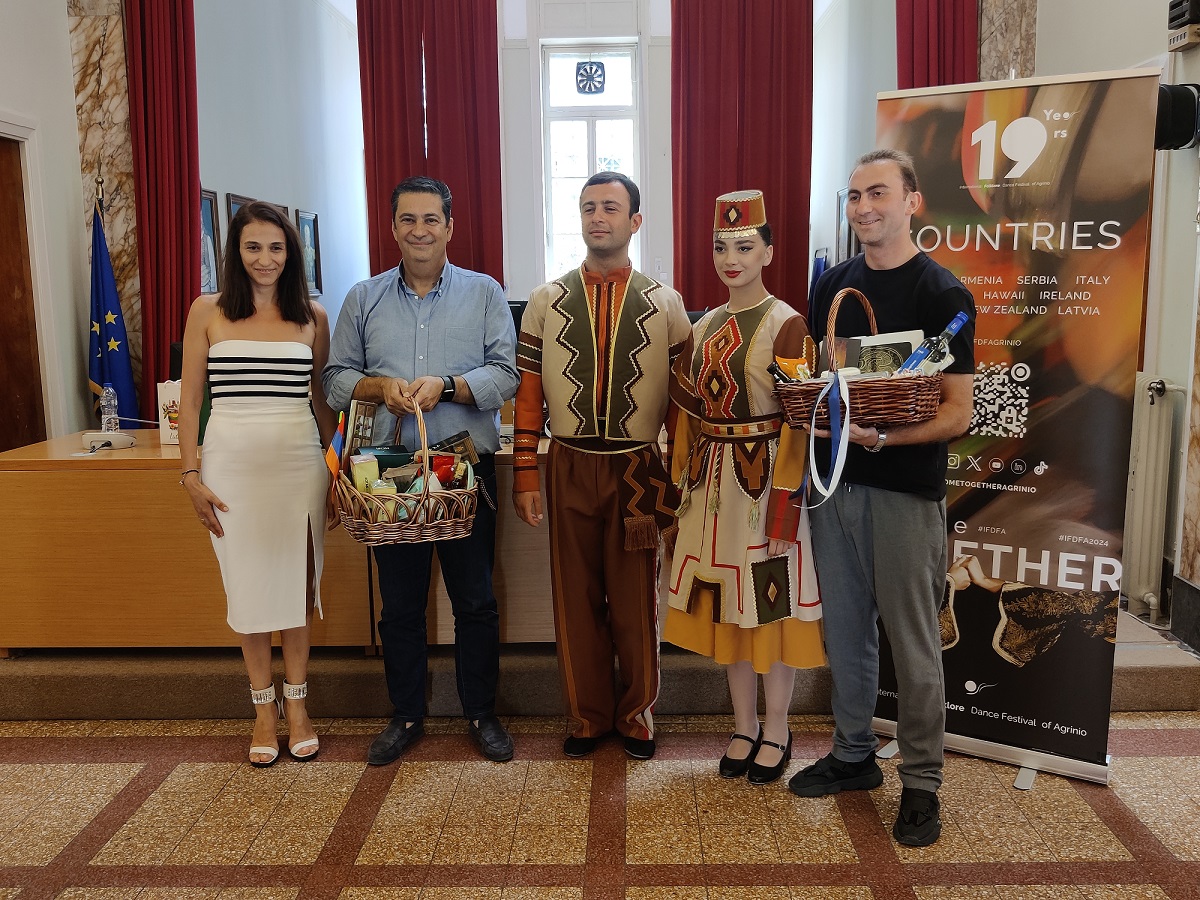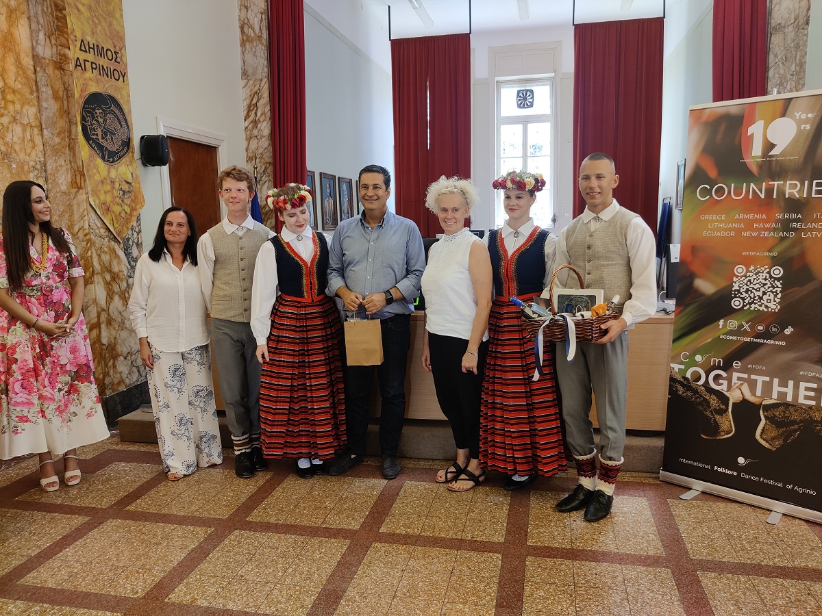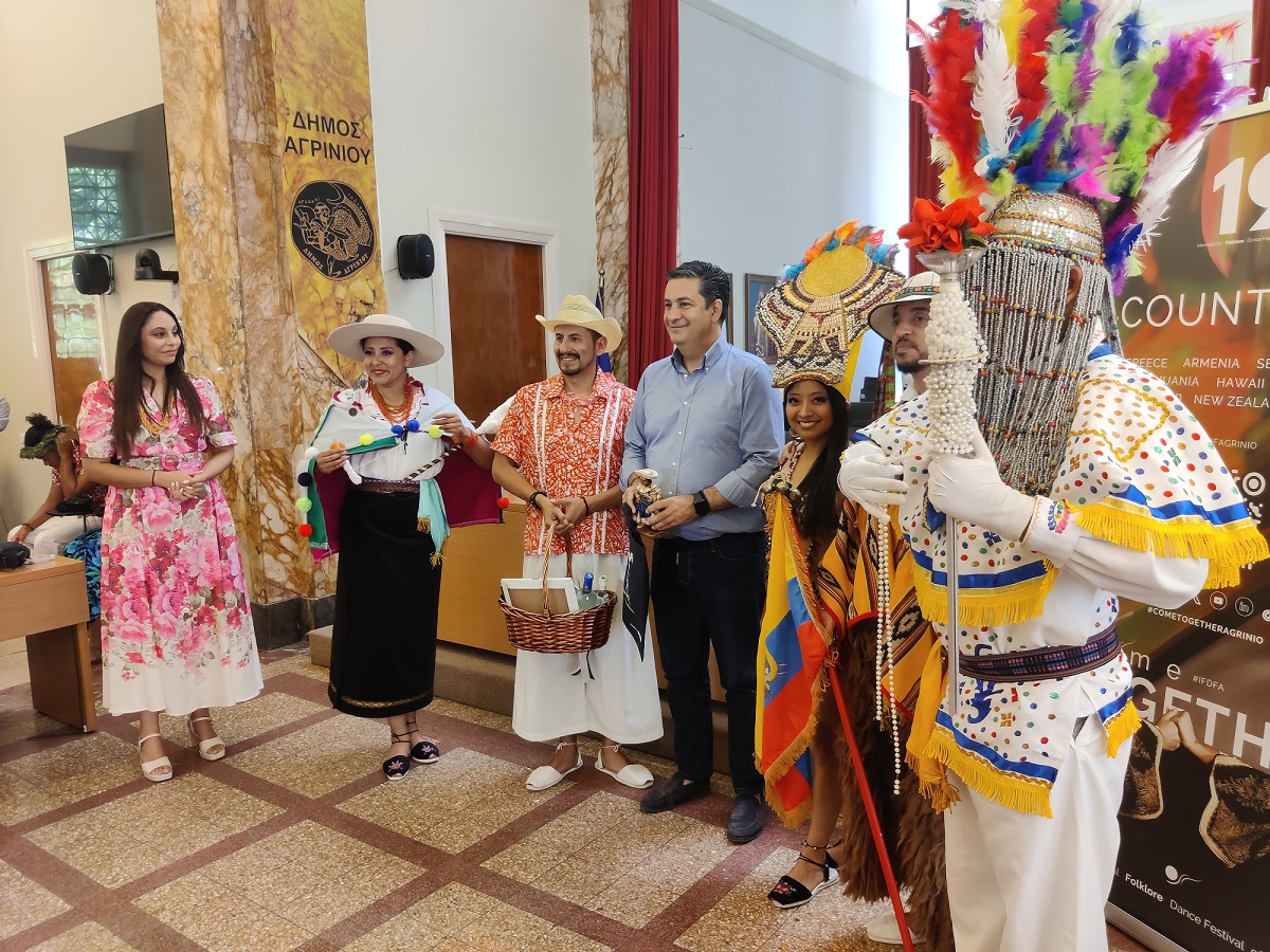 Χορευτές από Χαβάη, Νέα Ζηλανδία, Εκουαδόρ, Λιθουανία, Λετονία, Σερβία, Ιρλανδία, Αρμενία και Ιταλία, αντάλλαξαν δώρα με τον Δήμαρχο Αγρινίου.