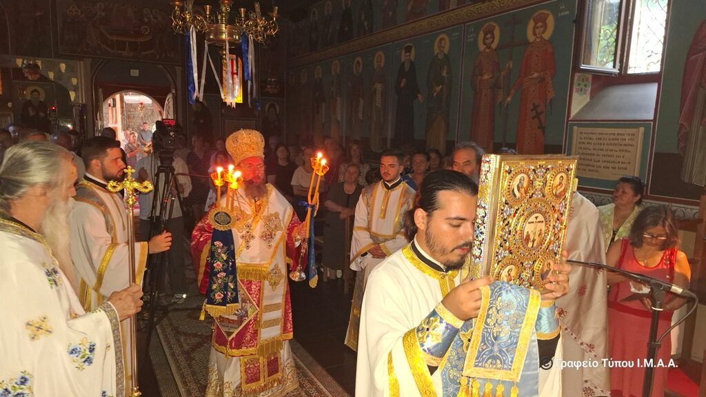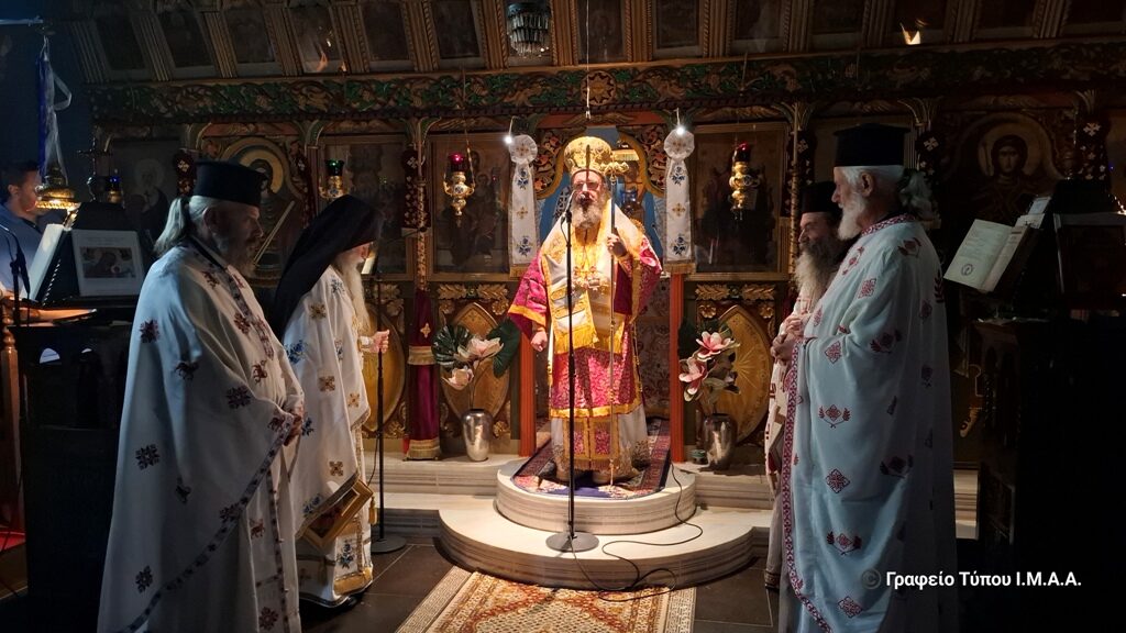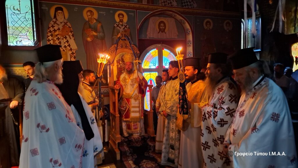 Το πρωί της Παρασκευής 23ης Αυγούστου 2024 ο Σεβασμιώτατος Μητροπολίτης Αιτωλίας και Ακαρνανίας κ. Δαμασκηνός χοροστάτησε στην ακολουθία του Όρθρου και προεξήρχε της πανηγυρικής Θείας Λειτουργίας στην Ιερά Μονή Κοιμήσεως της Θεοτόκου, που δεσπόζει στην ακρόπολη του Βλοχού, στην βόρεια πλευρά της Τριχωνίδος.