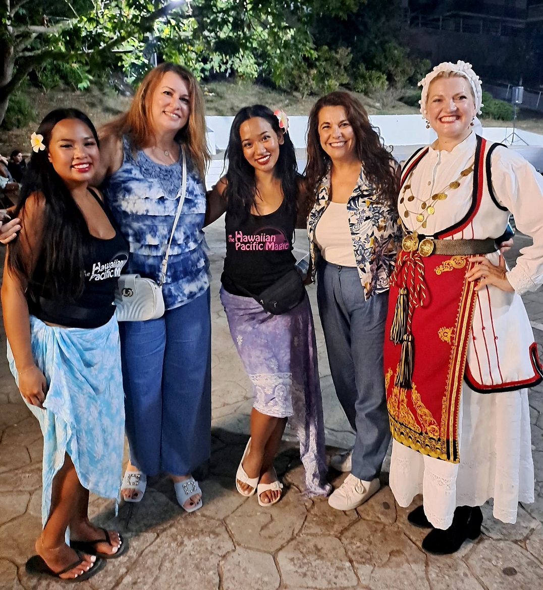 Αρχικά, η εντυπωσιακή χορευτική ομάδα Hawaiian Pacific Magic έφερε την μαγεία της Πολυνησίας από τα νησιά της Χαβάης και της Γαλλικής Πολυνησίας, στο Αγγελόκαστρο! Ντυμένοι με πολύχρωμα, εξωτικά κοστούμια και συνοδευόμενοι από τους ήχους του γιουκαλίλι, οι χορευτές ζωντάνεψαν την παράδοση και μοιράστηκαν μαζί με τους θεατές, το πνεύμα και τη φιλοσοφία του Aloha, μέσα από αρχαίους χορούς του νησιωτικού συμπλέγματος της Χαβάης.