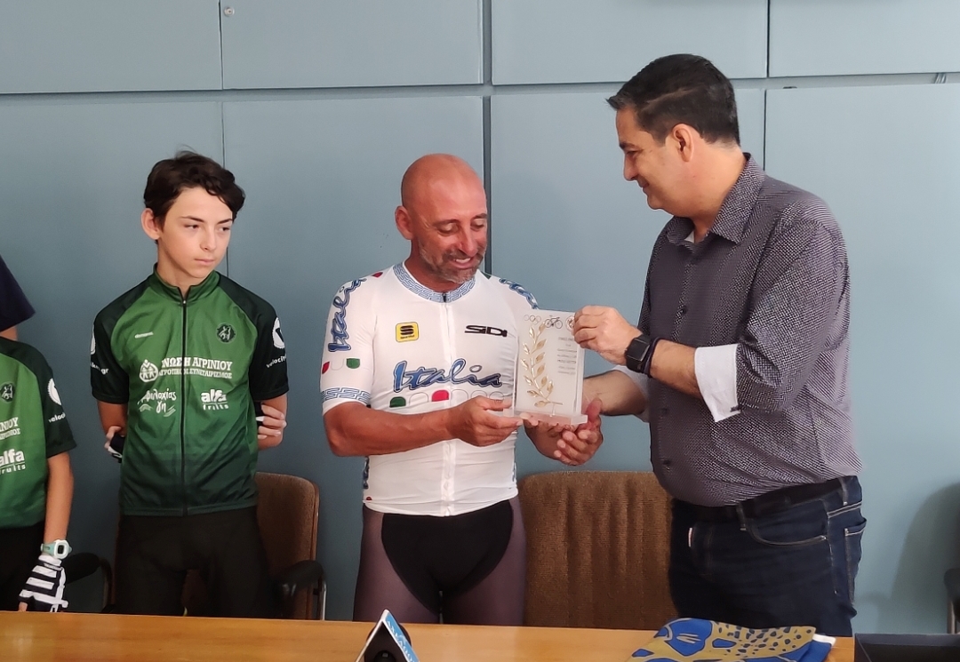 Ο Δήμαρχος Αγρινίου Γιώργος Παπαναστασίου υποδέχθηκε στο Δημαρχείο τον Paolo Bettini – Χρυσό Ολυμπιονίκη της Αθήνας στην ποδηλασία.