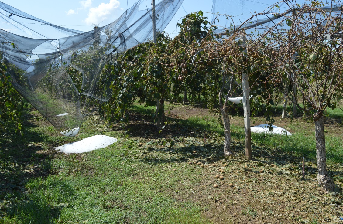 Η καταστροφή είναι ανυπολόγιστη σύμφωνα με πληροφορίες και η παραγωγή υπέστη μεγάλες απώλειες, με τους καρπούς να πέφτουν στο έδαφος και να χάνονται ουσιαστικά οι κόποι της φετινής χρονιάς για τους παραγωγούς που είναι σε απόγνωση. Ο μεγάλος όγκος και το βάρος του χαλαζιού προκάλεσαν μεγάλη ζημιές και στα δίχτυα προστασίας σε εγκαταστάσεις καλλιέργειας ακτινιδίων. Να θυμίσουμε ότι η συγκεκριμένη περιοχή χτυπήθηκε απο αντίστοιχη κακοκαιρία με μεγάλες καταστροφές σε καλλιέργειες και πέρυσι στις 24 Αυγούστου.