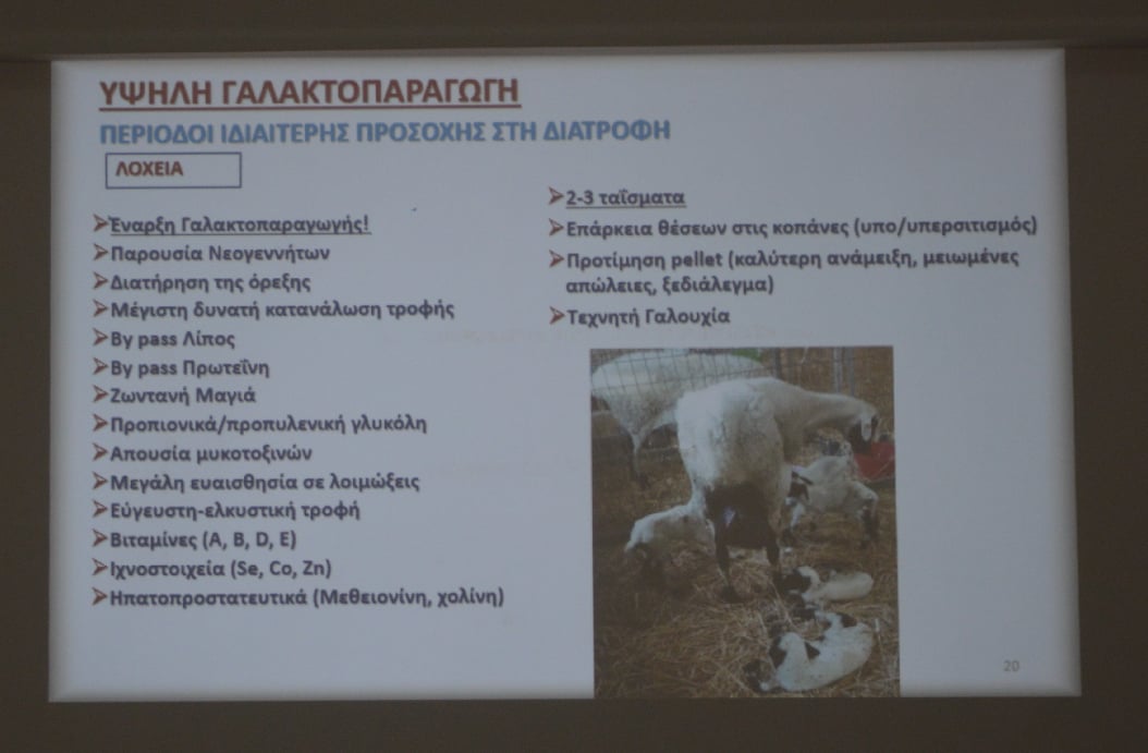 Οι αξιόλογοι ομιλητές παρουσίασαν αναλυτικά όλα τα στάδια του τοκετού και τις ανάγκες που έχουν τα αμνοερίφια, αλλά και τι πρέπει να προσέχουν οι κτηνοτρόφοι ώστε να μην έχουν ασθένειες ή απώλειες στο ζωικό τους κεφάλαιο.