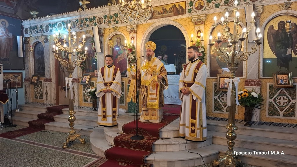 Στον πανηγυρίζοντα Ιερό Ενοριακό Ναό της Αγίας Σοφίας στο χωριό Ρίγανη Αιτωλοακαρνανίας, ιερούργησε την Τρίτη 17 Σεπτεμβρίου 2024 ο Σεβασμιώτατος Μητροπολίτης Αιτωλίας και Ακαρνανίας κ. Δαμασκηνός.