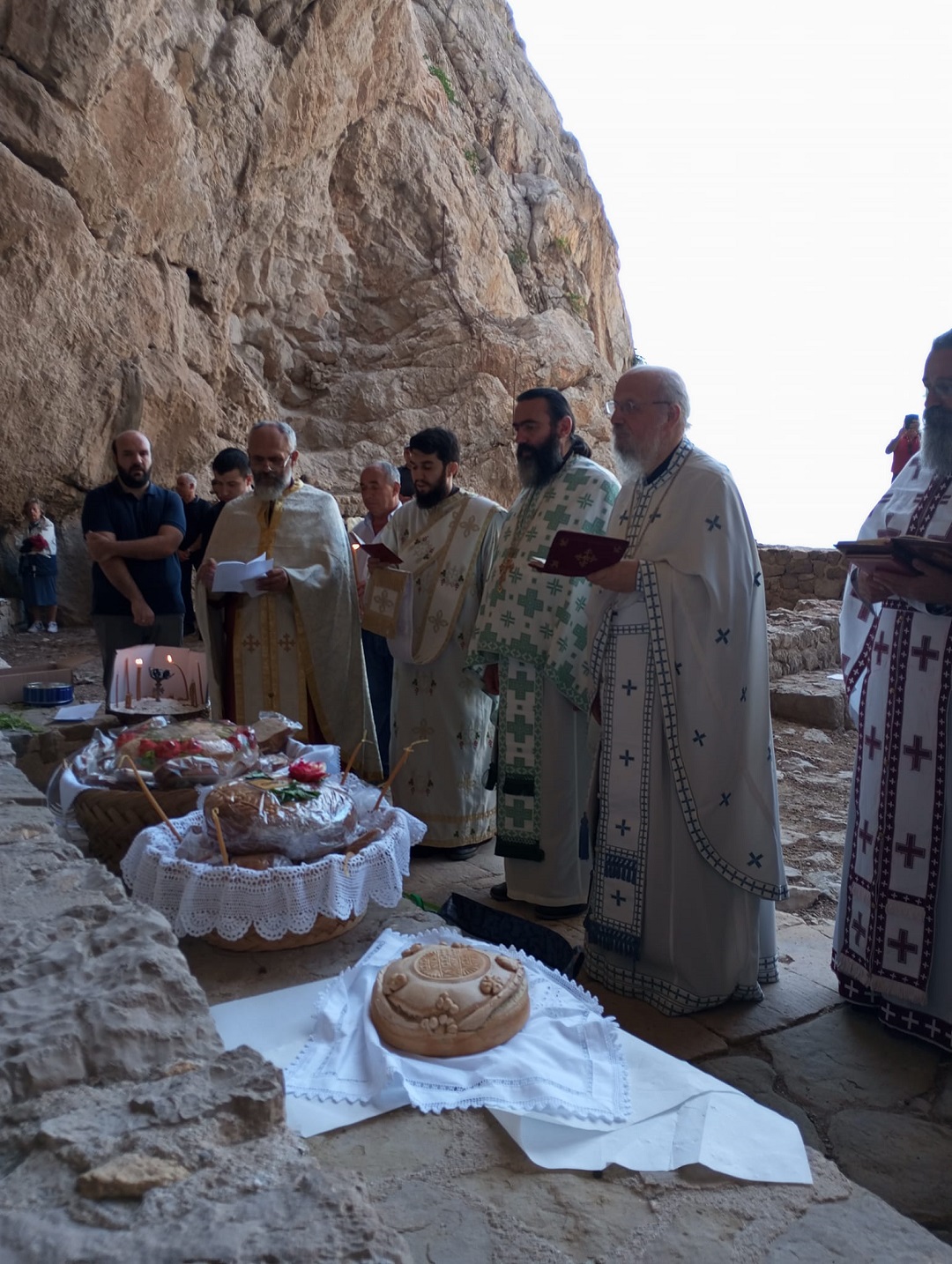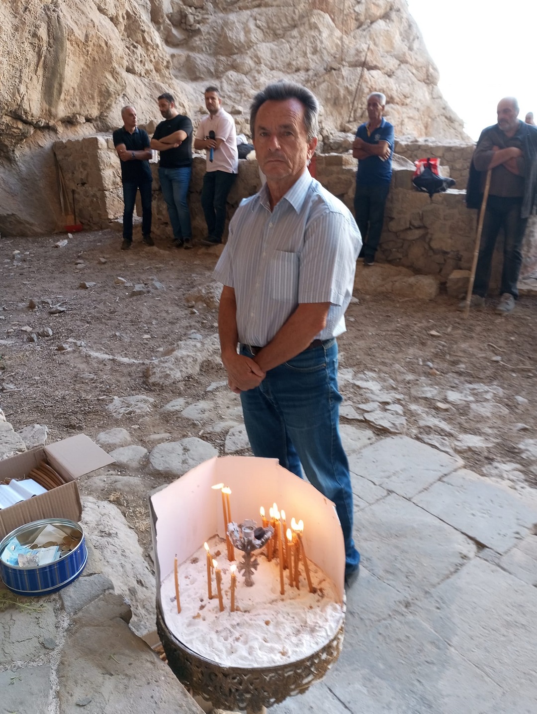 Στο επιβλητικό σπήλαιο του Αγίου Νικολάου Βαράσοβας τελέσθηκαν σήμερα Σάββατο 21 Σεπτεμβρίου, Θεία Λειτουργία μετ΄ αρτοκλασίας και Τρισάγιο υπέρ αναπαύσεως της ψυχής του αείμνηστου Καθηγητή, Αθανάσιου Παλιούρα (1937-2014) παρουσία πλήθους πιστών που προσήλθαν στο δύσβατο σημείο με ψαρόβαρκες από την Κάτω Βασιλική και το Κρυονέρι.