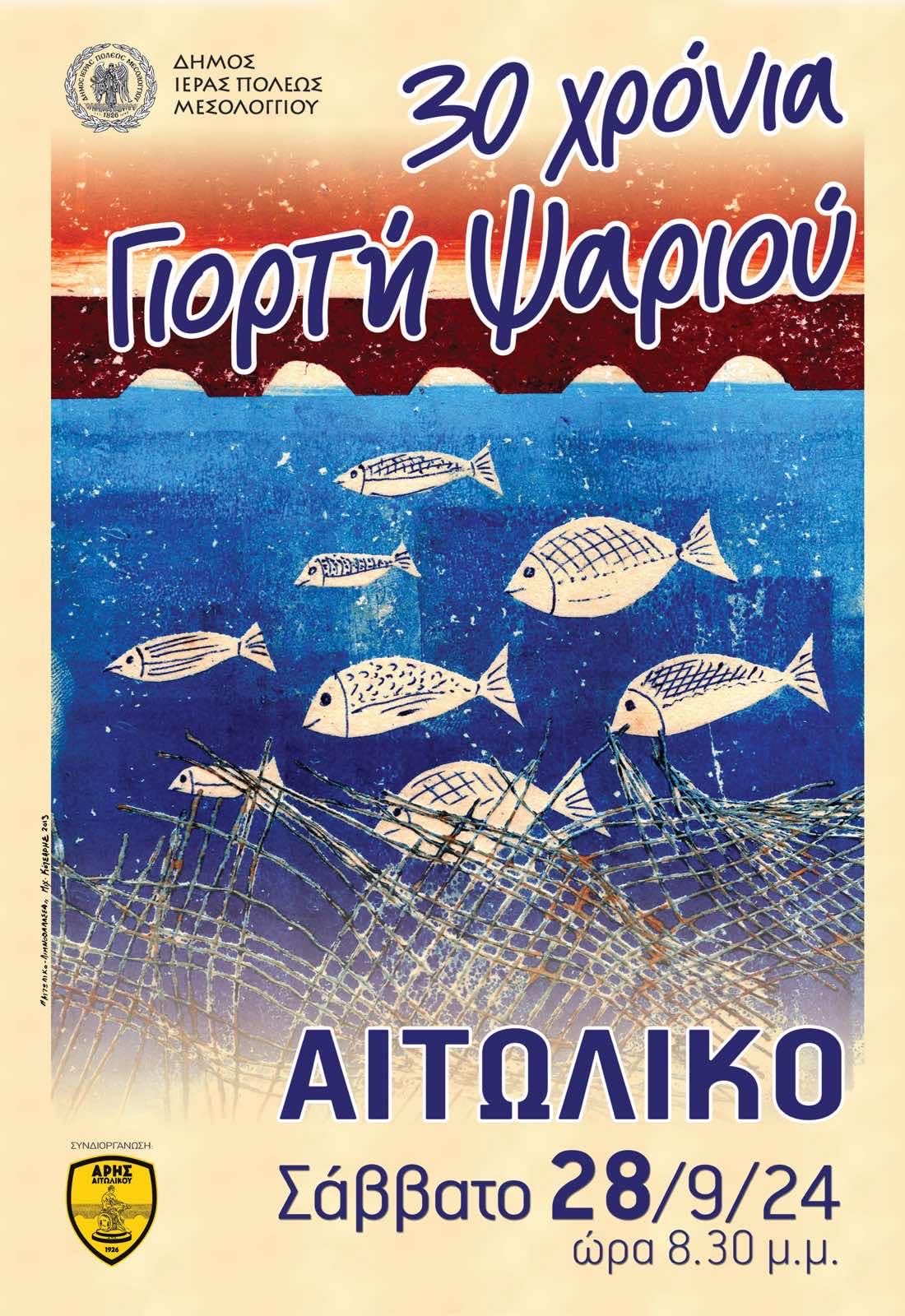 Ο Δήμος Ιερής Πόλης Μεσολογγίου σας προσκαλεί στα επίσημα εγκαίνια του Μουσείου Αλιείας Αιτωλικού, το Σάββατο, 28 Σεπτεμβρίου 2024, στις 19:00. Ακολουθεί στη συνέχεια η παραδοσιακή Γιορτή Ψαριού που συγκεντρώνει πάντα πολλούς ντόπιους και ξένους επισκέπτες.