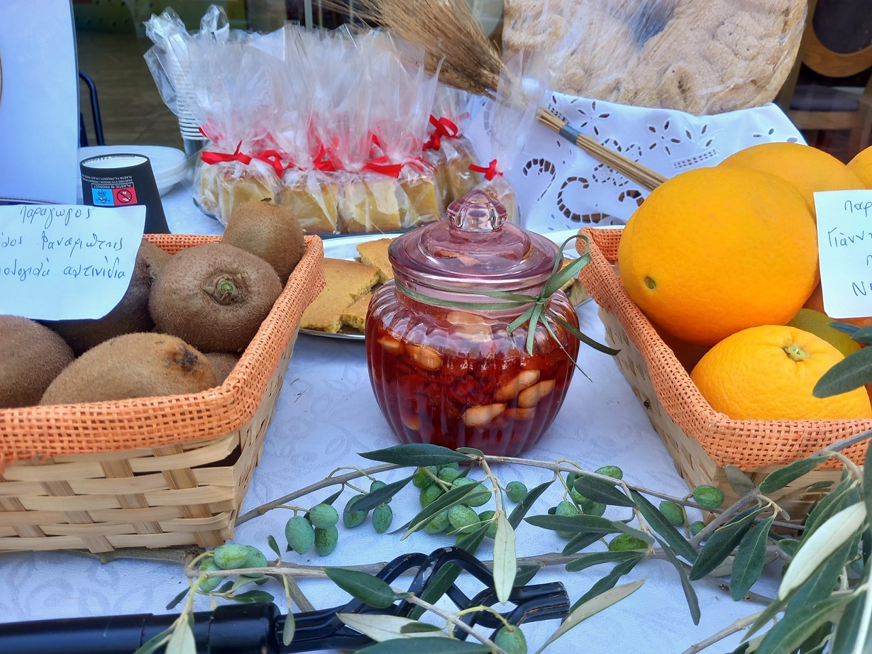 Οι κυρίες του συλλόγου προετοίμασαν γλυκίσματα, χυμούς πορτοκαλιού, ιδιαίτερα τοπικά ποτά, παραδοσιακές πίτες και προϊόντα που προσέφεραν τοπικοί παραγωγοί των Καλυβίων, με σκοπό να προβάλει μέσα από αντίστοιχες εκδηλώσεις, το χωριό μας.