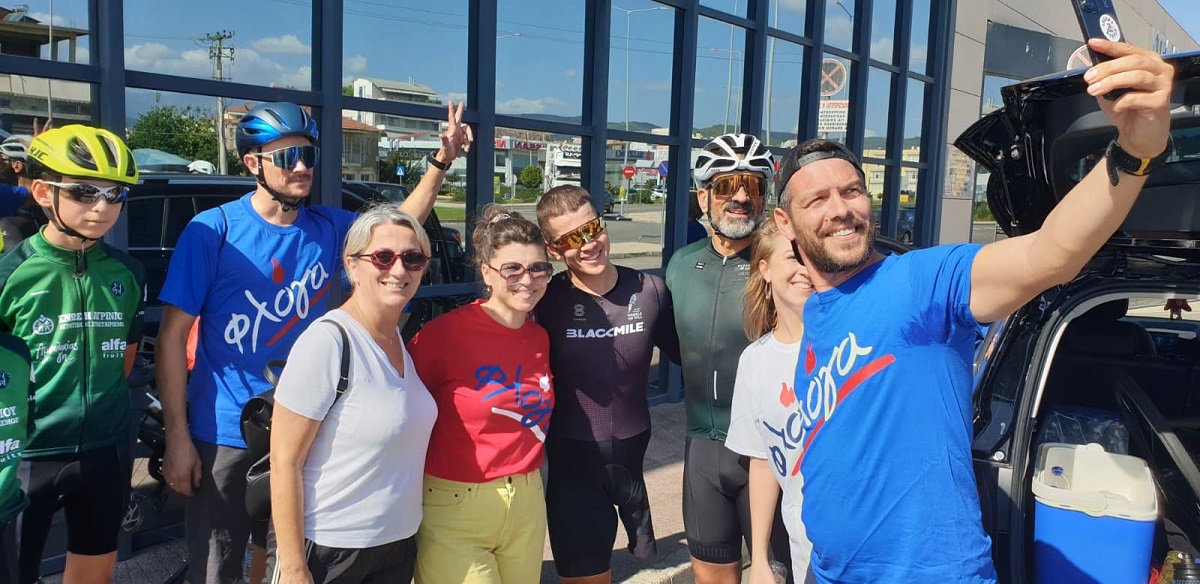 Ολιγόλεπτη στάση και υποδοχή από μέλη της Φλόγας Αγρινίου - Σύλλογος γονιών παιδιών με νεοπλασματική ασθένεια, είχε σήμερα Σάββατο 12 Οκτωβρίου, ο Παραολυμπιονίκης Ποδηλασίας, Νίκος Παπαγγελής ο οποίος πραγματοποίησε σε μια μέρα την διαδρομή Πάτρα - Ιωάννινα, μήκους 230 χλμ. με σκοπό την ενίσχυση του Συλλόγου Γονιών Παιδιών με Νεοπλασματική Ασθένεια "Φλόγα"!