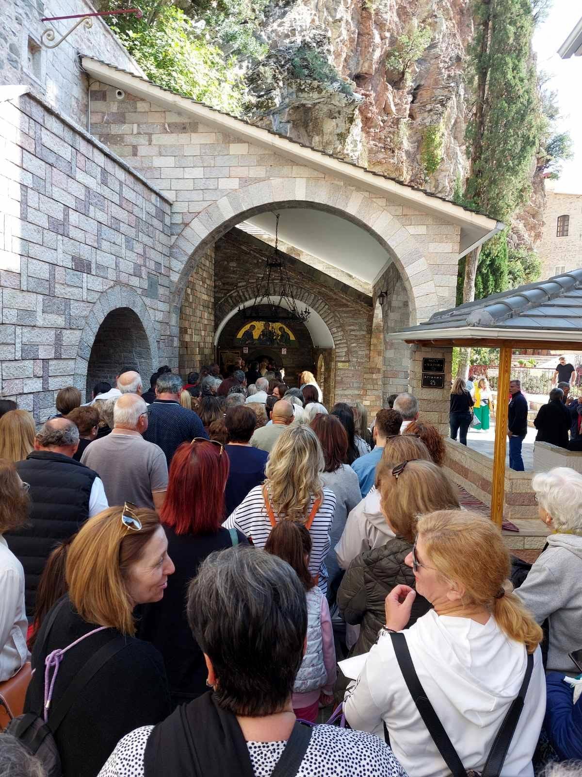 Στο χωριό του Προυσού, μας περιέγραψε ο Σπύρος Γαλανόπουλος, φτάσαμε στις 10 το πρωί της Κυριακής και κάναμε στάση στο καφενείο της πλατείας για καφέ… Κατόπιν κατευθυνθήκαμε προς την Ιερά Μονή Προυσού, για να προσκυνήσουμε την Θαυματουργή Εικόνα της Παναγίας και να ανάψουμε ένα κερί.