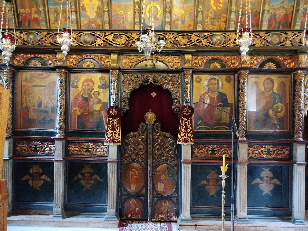 Είναι ξυλόγλυπτος με παραστάσεις αγίων. Είναι ωραίο δείγμα μικροτεχνικής εργασίας. Αργυρώθηκε από τον Ν. Δαμιανό στα 1792.