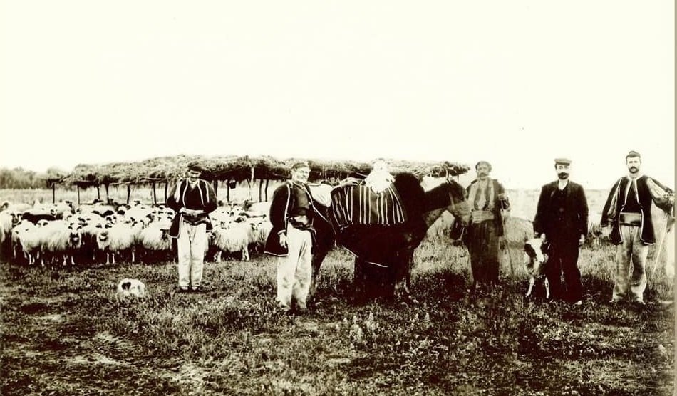Στη πρώτη φωτογραφία πάνω, διακρίνουμε νομάδες κτηνοτρόφους με τα κοπάδια τους στον κάμπο του Ζαπαντιού (από την ανάρτηση του Χρήστου Μποκόρου εδώ:(https://www.facebook.com/christos.th.bokoros/posts/1607403666108063).