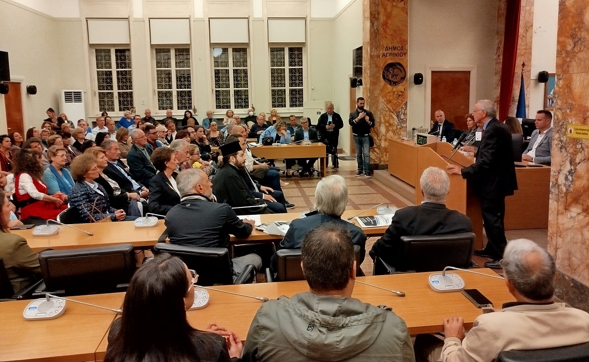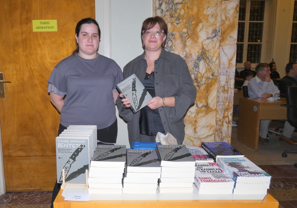 Παρουσιάστηκε σήμερα Πέμπτη 24 Οκτωβρίου, στο αναγνωστικό κοινό του Αγρινίου, το νέο βιβλίο του Πάνου Σόμπολου, με τίτλο: «Βεντέτες - Εγκλήματα βεντέτας στην Ελλάδα» στην κατάμεστη αίθουσα του Δημοτικού Συμβουλίου.