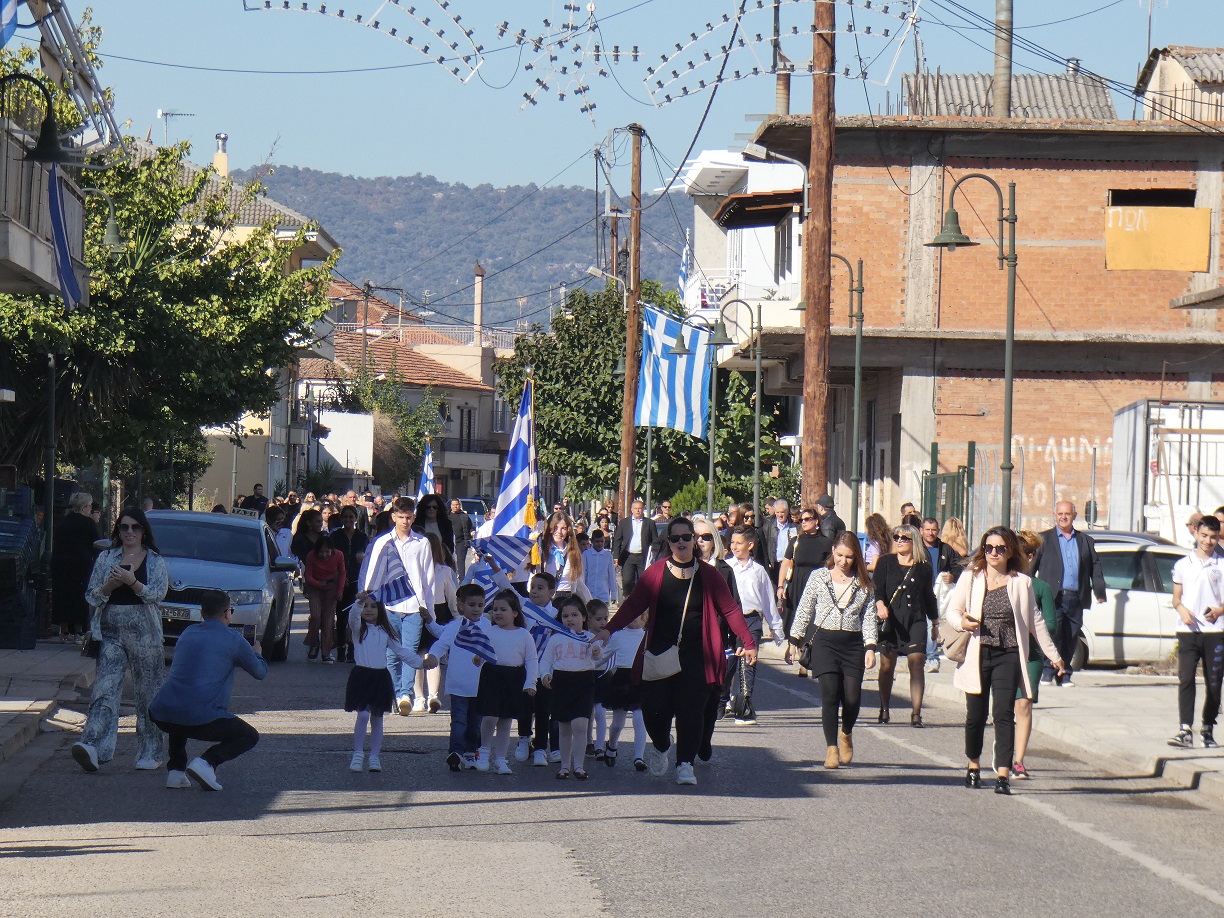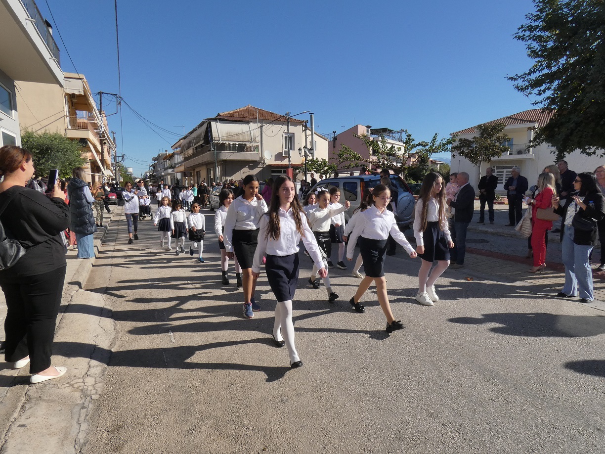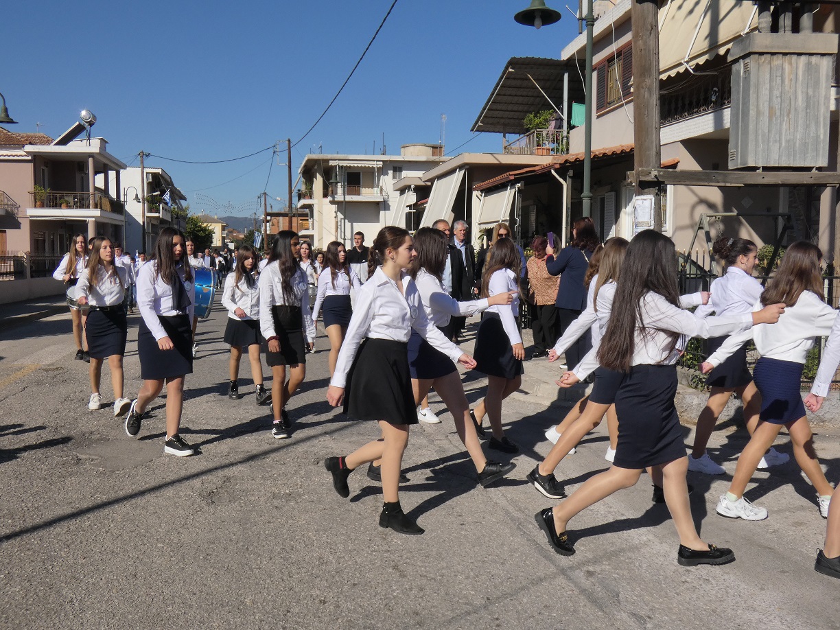 Μετά το πέρας της Θείας Λειτουργίας και της Δοξολογίας, με σύμμαχο τον καλό καιρό, οι μαθητές και οι μαθήτριες του Νηπιαγωγείου, του Δημοτικού Σχολείου και του Γυμνασίου Καλυβίων, παρέλασαν στους κεντρικούς δρόμους, καταχειροκροτούμενοι από τους κατοίκους που τους παρακολουθούσαν με ενθουσιασμό…