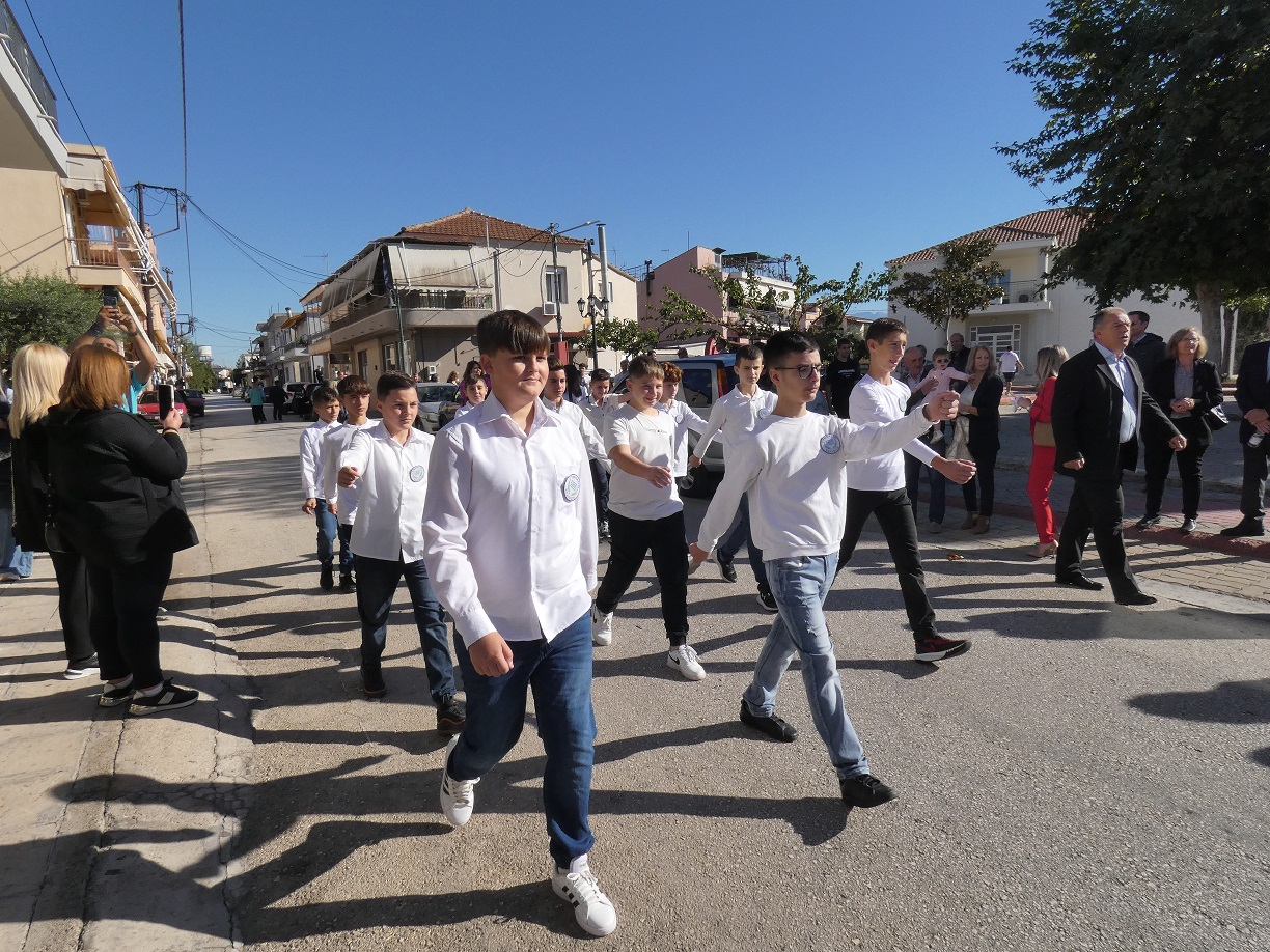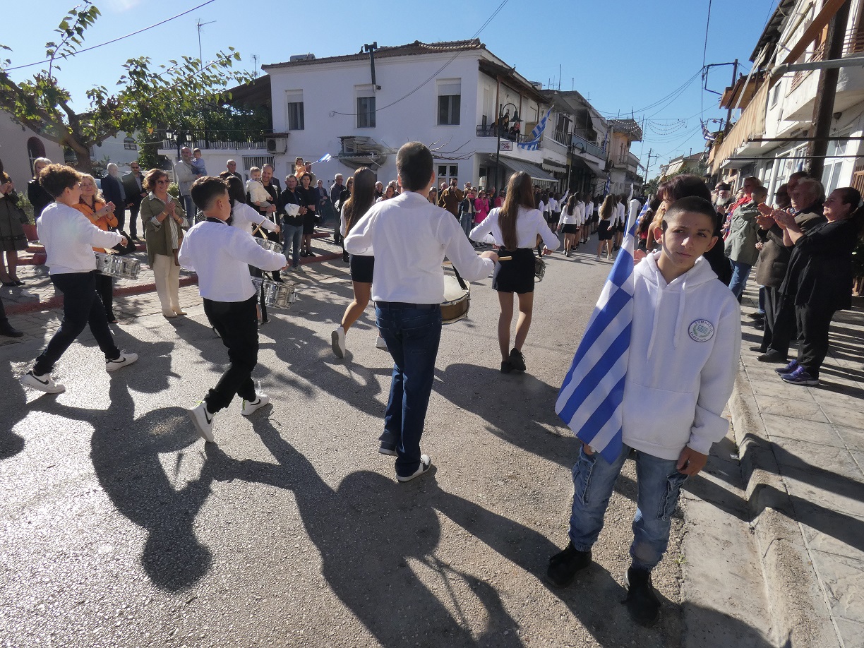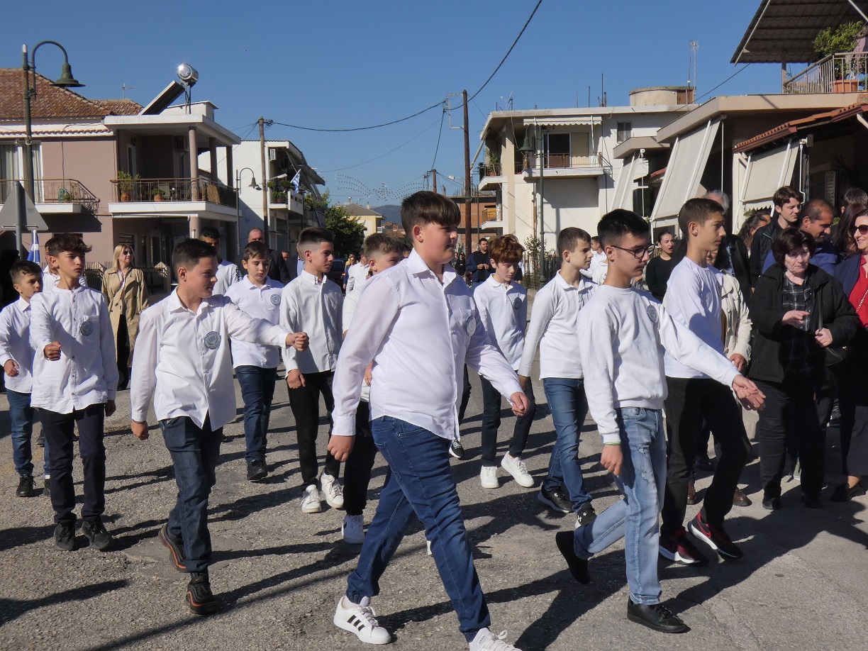 Μετά το πέρας της Θείας Λειτουργίας και της Δοξολογίας, με σύμμαχο τον καλό καιρό, οι μαθητές και οι μαθήτριες του Νηπιαγωγείου, του Δημοτικού Σχολείου και του Γυμνασίου Καλυβίων, παρέλασαν στους κεντρικούς δρόμους, καταχειροκροτούμενοι από τους κατοίκους που τους παρακολουθούσαν με ενθουσιασμό…