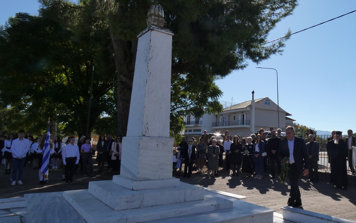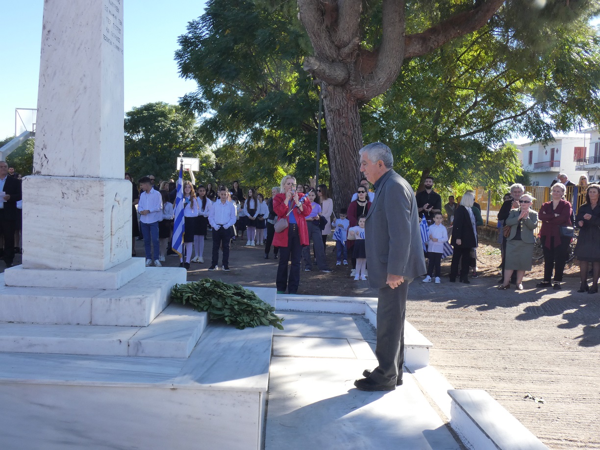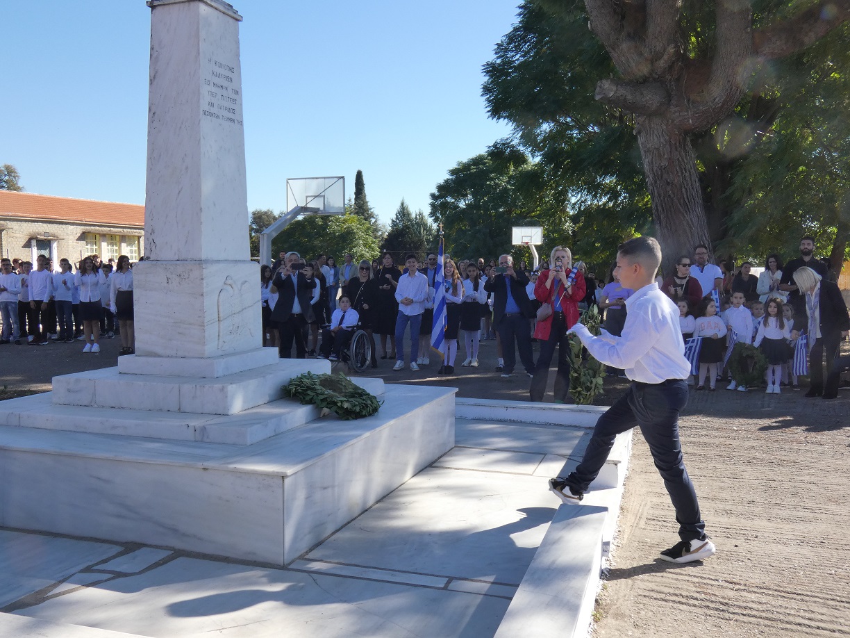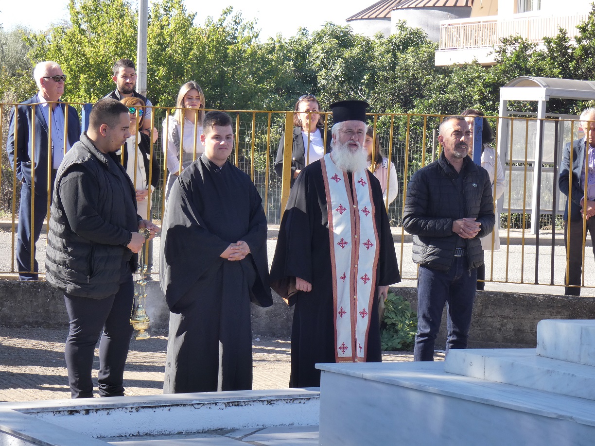 Το τρισάγιο σε μνήμη των αγωνιστών που έπεσαν υπέρ Πίστεως και Πατρίδος, εψάλλη από τον ιερέα Θ. Αθανασόπουλο, στο Μνημείο των Πεσόντων, στο προαύλιο του Δημοτικού Σχολείου.