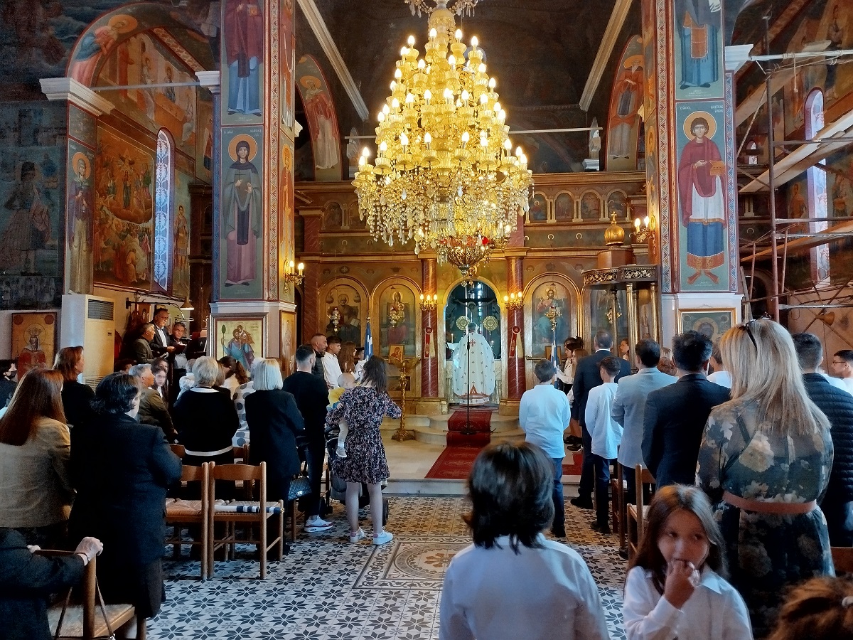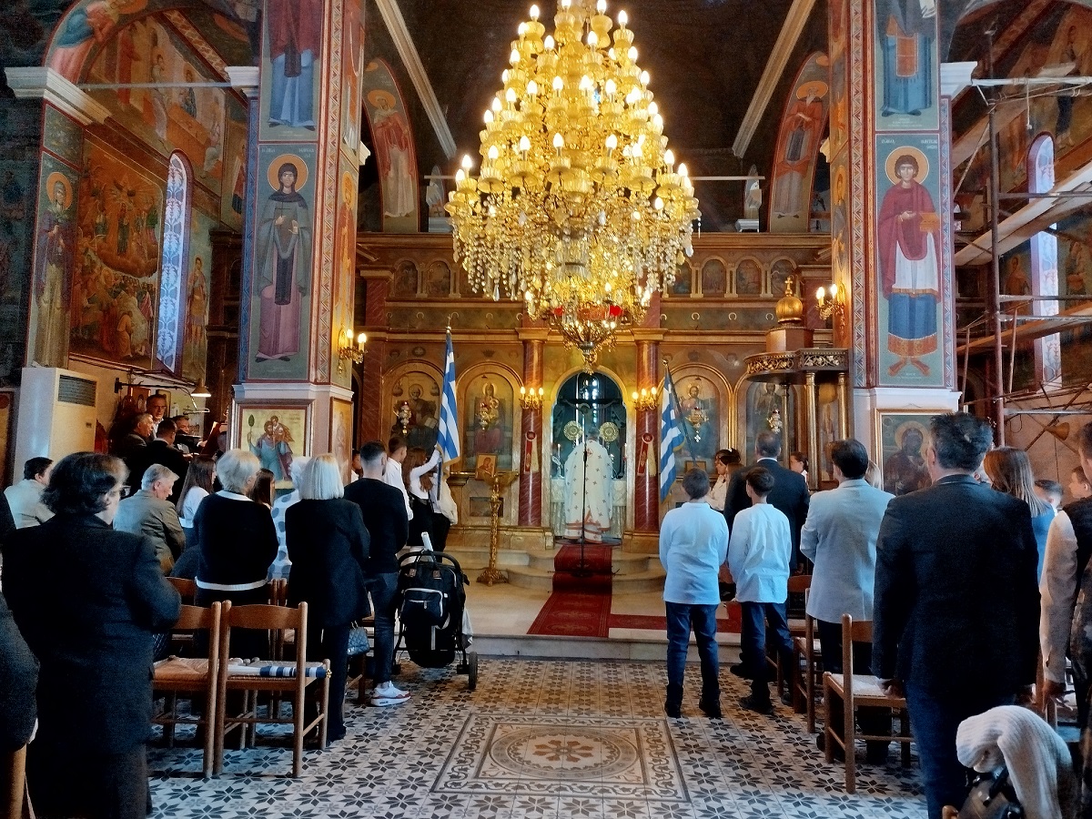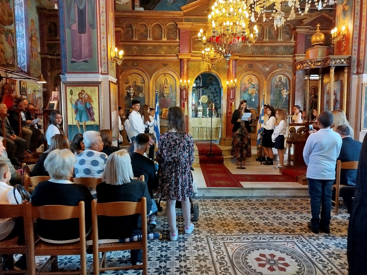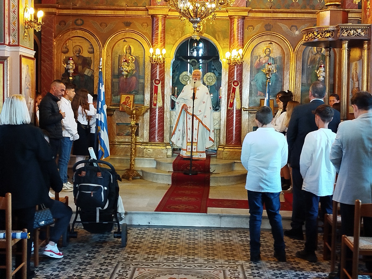 Το τρισάγιο σε μνήμη των αγωνιστών που έπεσαν υπέρ Πίστεως και Πατρίδος, εψάλλη από τον ιερέα Θ. Αθανασόπουλο, στο Μνημείο των Πεσόντων, στο προαύλιο του Δημοτικού Σχολείου.