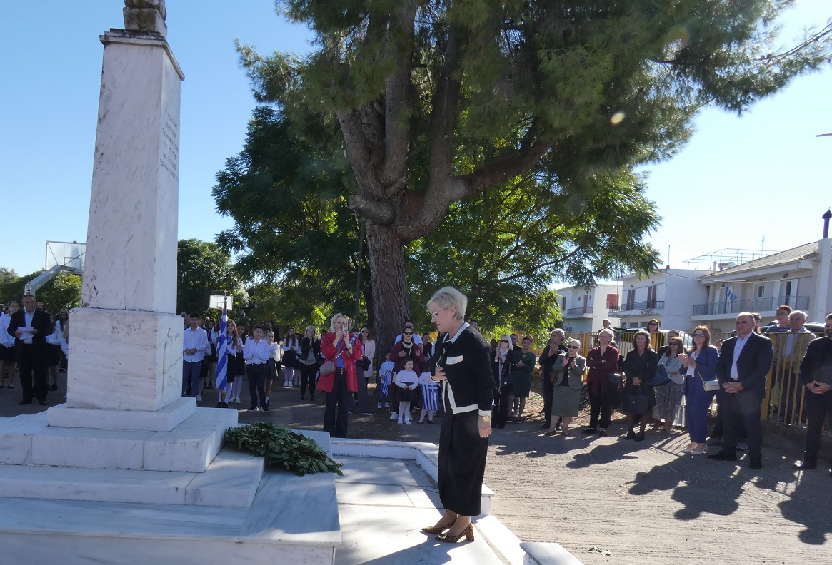 Ο πανηγυρικός της ημέρας εκφωνήθηκε από την εκπαιδευτικό του Δημοτικού Σχολείου Καλυβίων, κα Ειρήνη Μπαμπάτσικου, η οποία μεταξύ άλλων ανέφερε τα εξής: «Το Έπος του ’40, αποτελεί πρότυπο εθνικής αυτοπεποίθησης και υπερηφάνειας. Το ΟΧΙ της Ελλάδας την 28η Οκτωβρίου 1940, ήταν μια κορυφαία στιγμή του έθνους μας στη σύγχρονη Ιστορία. Αψηφώντας την υπεροπλία των δυνάμεων του Άξονα, οι Έλληνες αγωνίστηκαν για την ελευθερία, τη δικαιοσύνη. Είναι μέρα μνήμης, τιμής και ευγνωμοσύνης σε γνωστούς και αγνώστους ήρωες, που πολέμησαν για να είμαστε εμείς σήμερα ελεύθεροι. Τους χρωστάμε το σήμερα και τους ευγνωμονούμε για τον πατριωτισμό τους και τη θυσία τους για το έθνος. Ζήτω η 28η Οκτωβρίου 1940!»