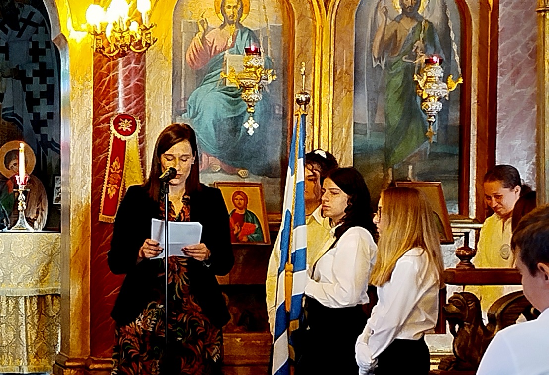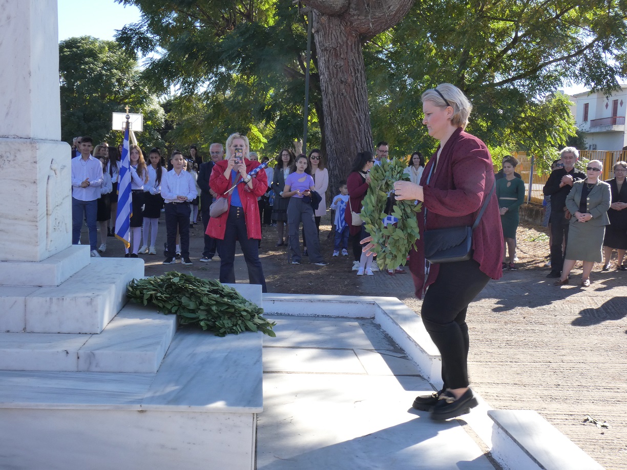 Τηρήθηκε ενός λεπτού σιγή σε μνήμη των ηρωϊκώς πεσόντων Ελλήνων κατά τον ελληνο-ιταλικό πόλεμο του 1940-41 και στο τέλος της τελετής όλοι οι μαθητές τραγούδησαν τον Εθνικό μας ύμνο!