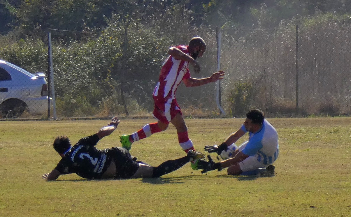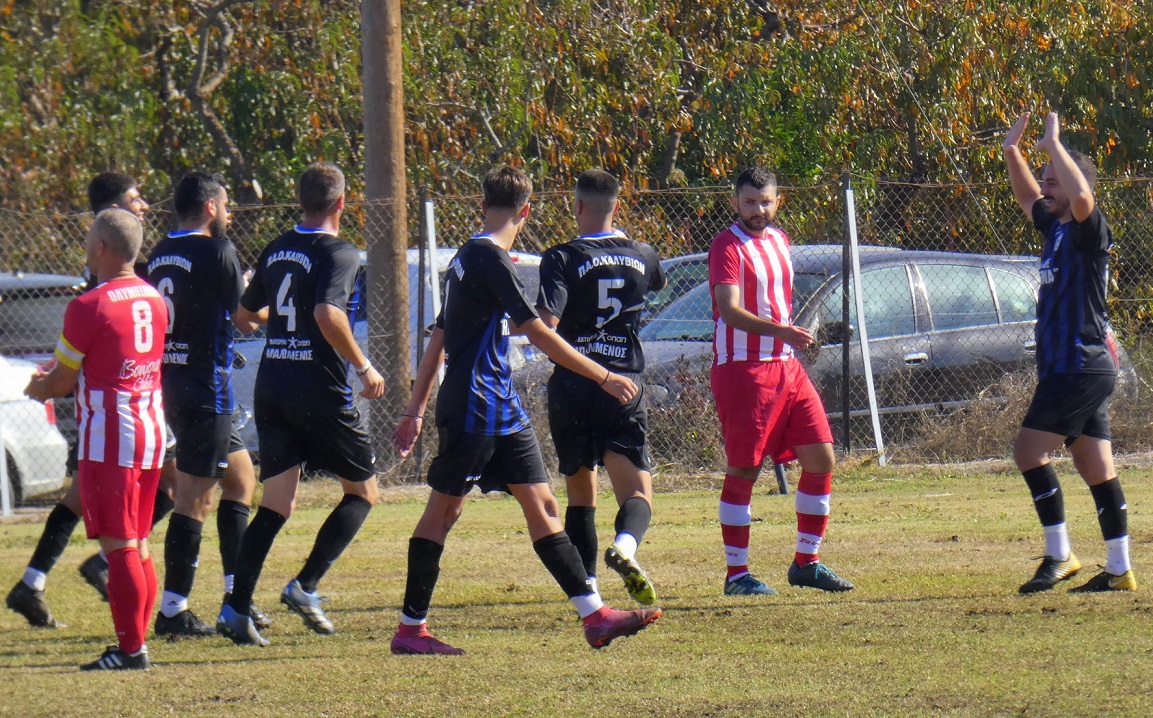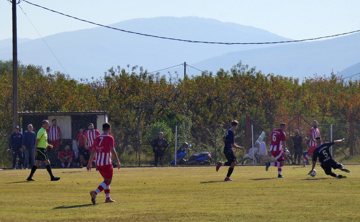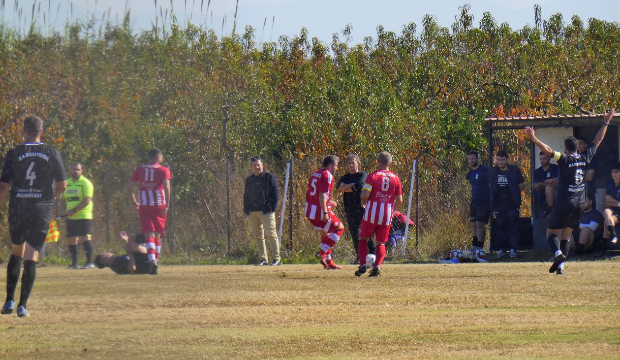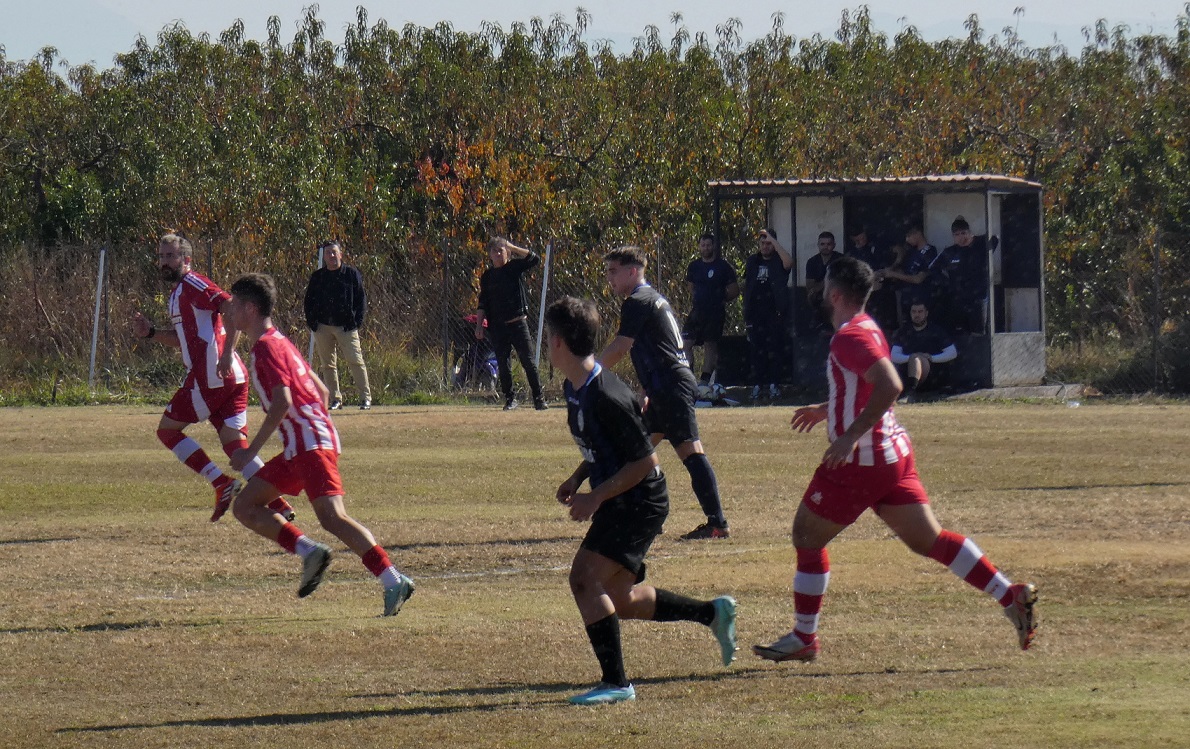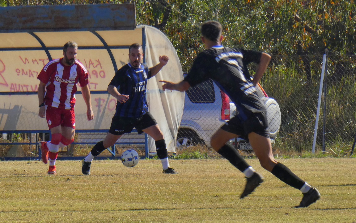Οι Καλυβιώτες προηγήθηκαν με ωραία κεφαλιά του Χετάι, ύστερα από σέντρα ακριβείας του Σ. Τασούλη και κατόπιν στο 35΄ με γκολ που πέτυχε με πλασέ του Χ. Κονδύλη, μετά από μεταβίβαση του Γ. Καραλή.