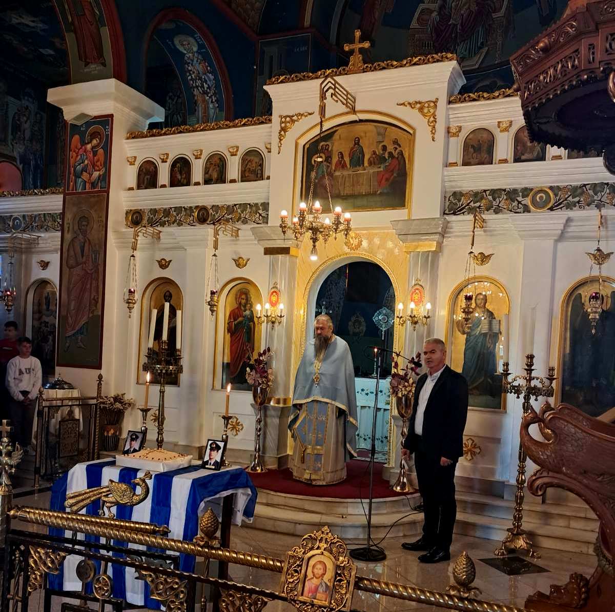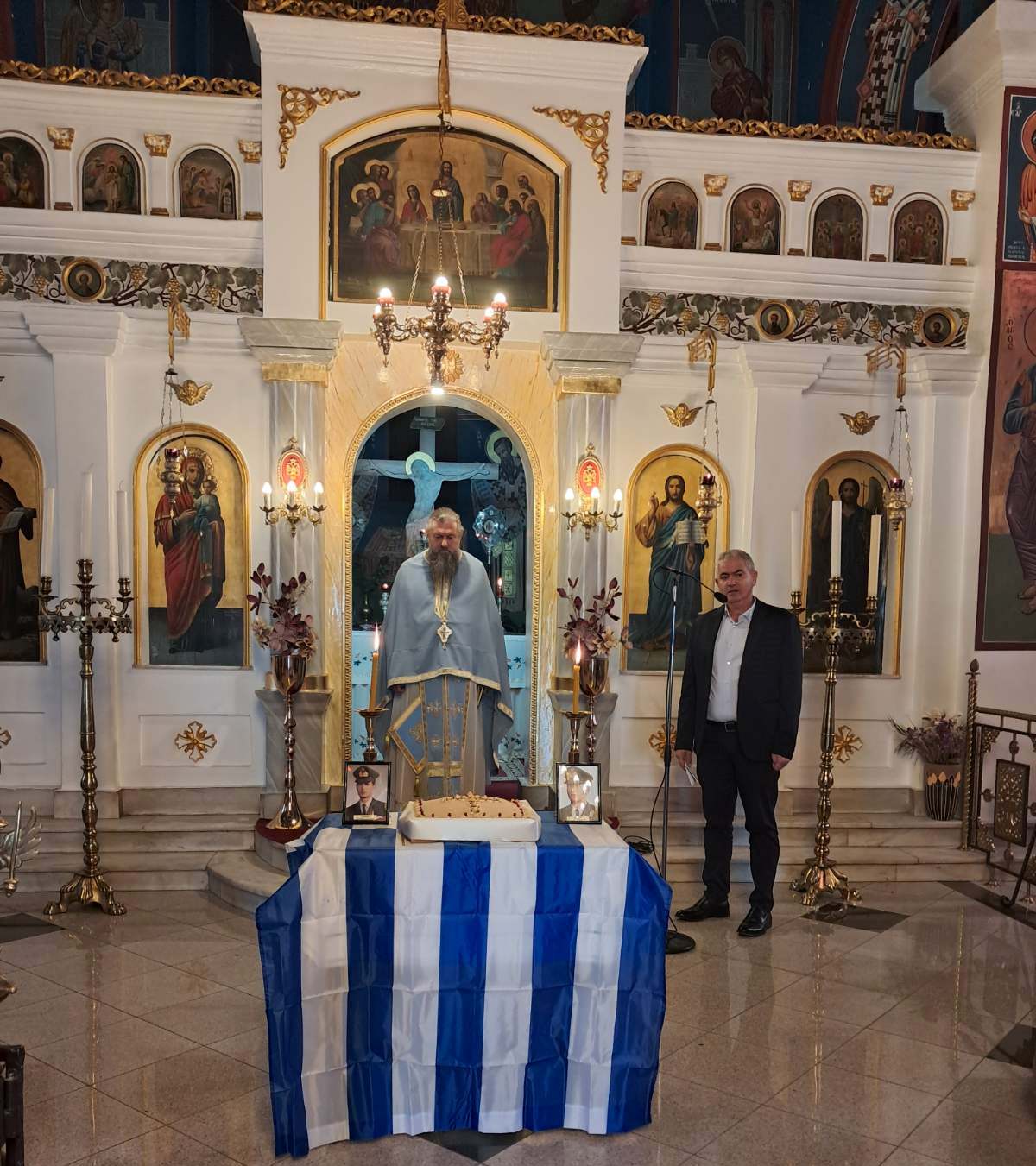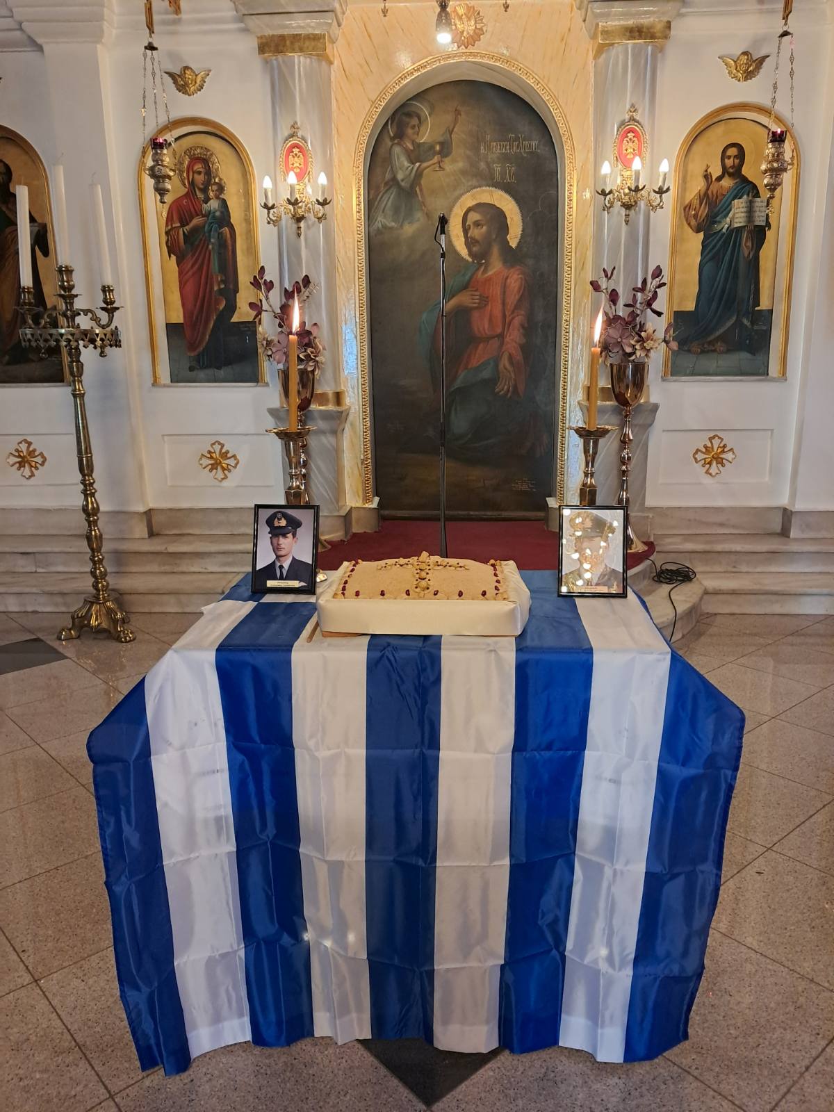 Στον Ιερό Ναό Αποστόλου Παύλου, Μεγ. Χώρας, τελέσθηκαν Θεία Λειτουργία και επιμνημόσυνη δέηση για τους δυο ήρωες πιλότους, όπου χοροστάτησε ο Πρωτοπρεσβύτερος π. Κοσμάς Τσιτσιβός, ενώ παρέστησαν συγγενείς, οι τοπικές αρχές, μαθητές και πολλοί κάτοικοι.