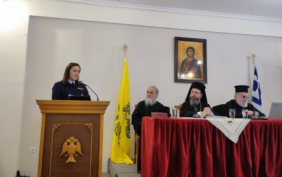 Ακολούθησαν σύντομες τοποθετήσεις από την κα Αικατερίνη Βασιλοπούλου, Προϊσταμένη του Γραφείου Ενδοοικογενειακής Βίας, της Αστυνομικής Διευθύνσεως Αιτωλίας, με θέμα: «Ενδοοικογενειακή βία και παιδική κακοποίηση – Αστυνομική θεώρηση».