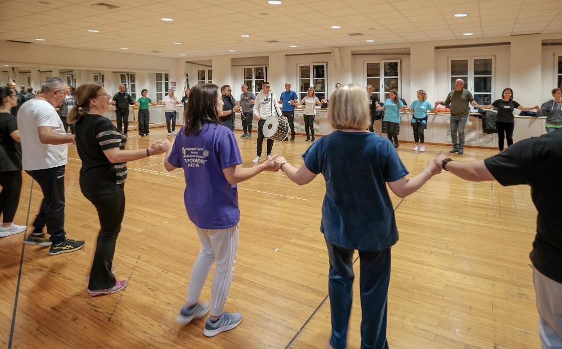 Τη δεύτερη ημέρα του σεμιναρίου η επιμορφωτική διαδικασία συνεχίστηκε δίδοντας έμφαση στην πρακτική εξάσκηση των συμμετεχόντων πάνω σε επιμέρους τοπικούς παραδοσιακούς χορούς.