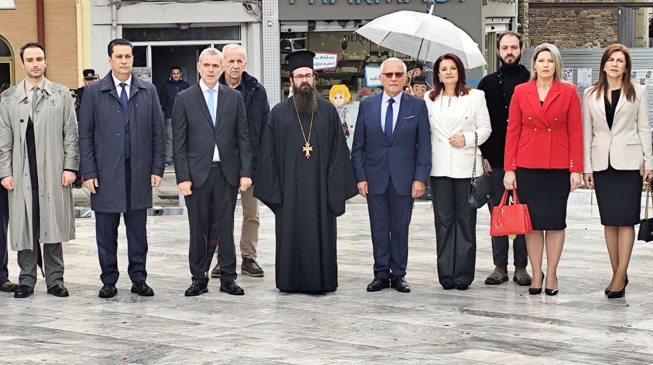 Αμέσως μετά πραγματοποιήθηκε Επιμνημόσυνη Δέηση και κατάθεση στεφάνων στο Μνημείο Πεσόντων, στην πλατεία Μαρίας Δημάδη, από τον Υφυπουργό Εργασίας & Κοινωνικής Ασφάλισης, Κωνσταντίνο Καραγκούνη, τον Δήμαρχο Αγρινίου, Γιώργο Παπαναστασίου, τον Πρόεδρο του Δημοτικού Συμβουλίου, Κωνσταντίνο Ζώη, τον εκπ. της μείζονος αντιπολίτευσης, Κ. Κουτσουπιά, τον Αστυνομικό Διευθυντή, Δημήτρη Γαλαζούλα, τον Διοικητή Πυροσβεστικής Υπηρεσίας Αγρινίου, Ευστράτιο Πετράκη, τον εκπρόσωπο του Διοικητή Αεροπορικού Φυλακίου Αγρινίου, τον Πρόεδρο της Κοινότητας Αγρινίου, Κώστα Μποκόρο, τον κ. Περικλή Τσάντζαλο, Πρόεδρο της Ένωσης Αποστράτων Αξιωματικών Στρατού της Π.Ε. Αιτωλ/νίας, τον εκπρ.της τοπ. διοίκησης Διεθνούς Ένωσης Αστυνομικών, Λάμπρο Σκουφή, τον εκπρόσωπο του Επιμελητηρίου, Κ. Κιτσοπάνο, και τον Πρόεδρο του Συνδέσμου Αποστράτων Σωμάτων Ασφαλείας Αγρινίου Κ. Λιάπης.