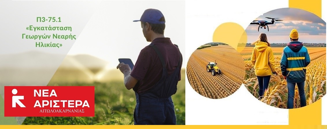Σε ανακοίνωση της Νέας Αριστεράς Αιτωλοακαρνανίας αναφέρονται τα εξής: «Αναρτήθηκε η 1η πρόσκληση της παρέμβασης Π3-75.1, για την «Εγκατάσταση Γεωργών Νεαρής Ηλικίας», του ΣΣ ΚΑΠ της Ελλάδας 2023 – 2027 η οποία εφαρμόζεται σε όλες τις Περιφέρειες της χώρας. Ως έτος αναφοράς της αίτησης στήριξης ορίζεται το έτος 2024.