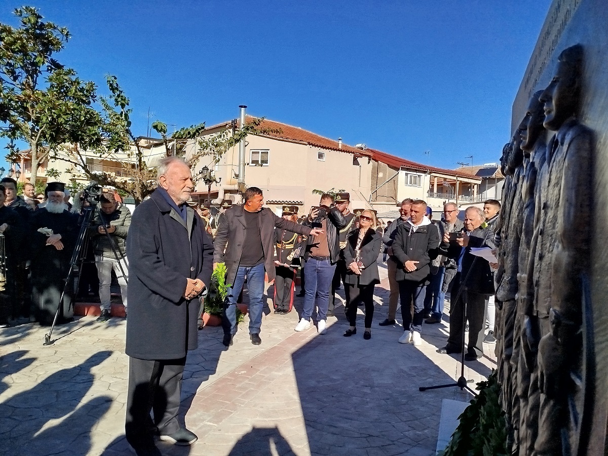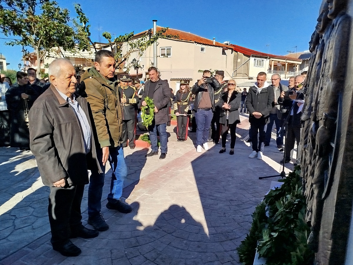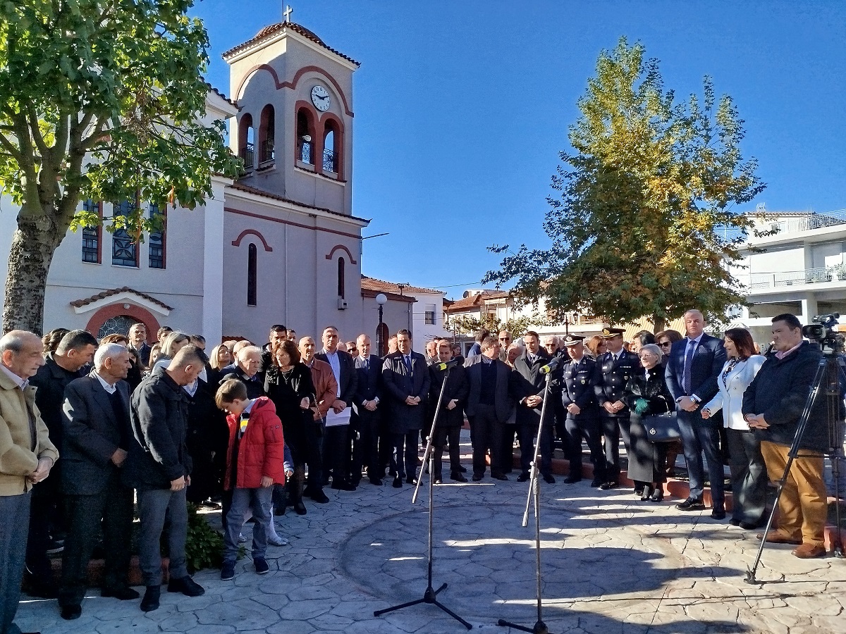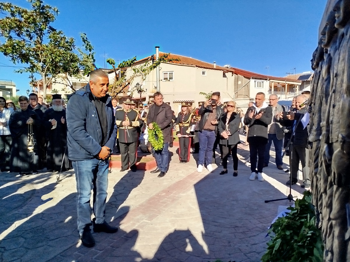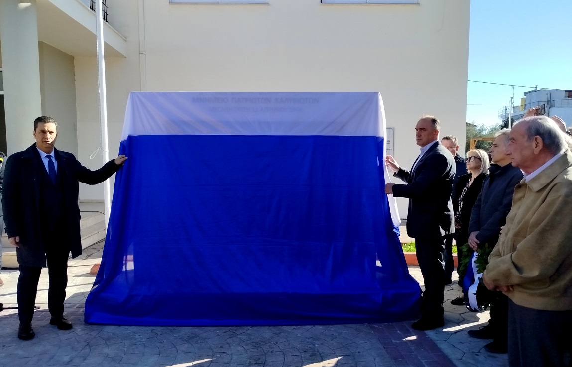Η επίσημη Τελετή Αποκαλυπτηρίων του Μνημείου και Επιμνημόσυνη δέηση προς τιμήν των συνολικά 12 εκτελεσθέντων Ελλήνων πατριωτών, μεταξύ αυτών και 5 Καλυβιωτών, στη Μεγάλη Χώρα, τη Μεγάλη Τρίτη του 1944 από τους Γερμανούς κατακτητές, πραγματοποιήθηκε σήμερα Κυριακή 24 Νοεμβρίου 2024 στην πλατεία Καλυβίων Αγρινίου, παρουσία των επισήμων αρχών, σωμάτων ασφαλείας, συγγενών των θυμάτων και πλήθους κόσμου.