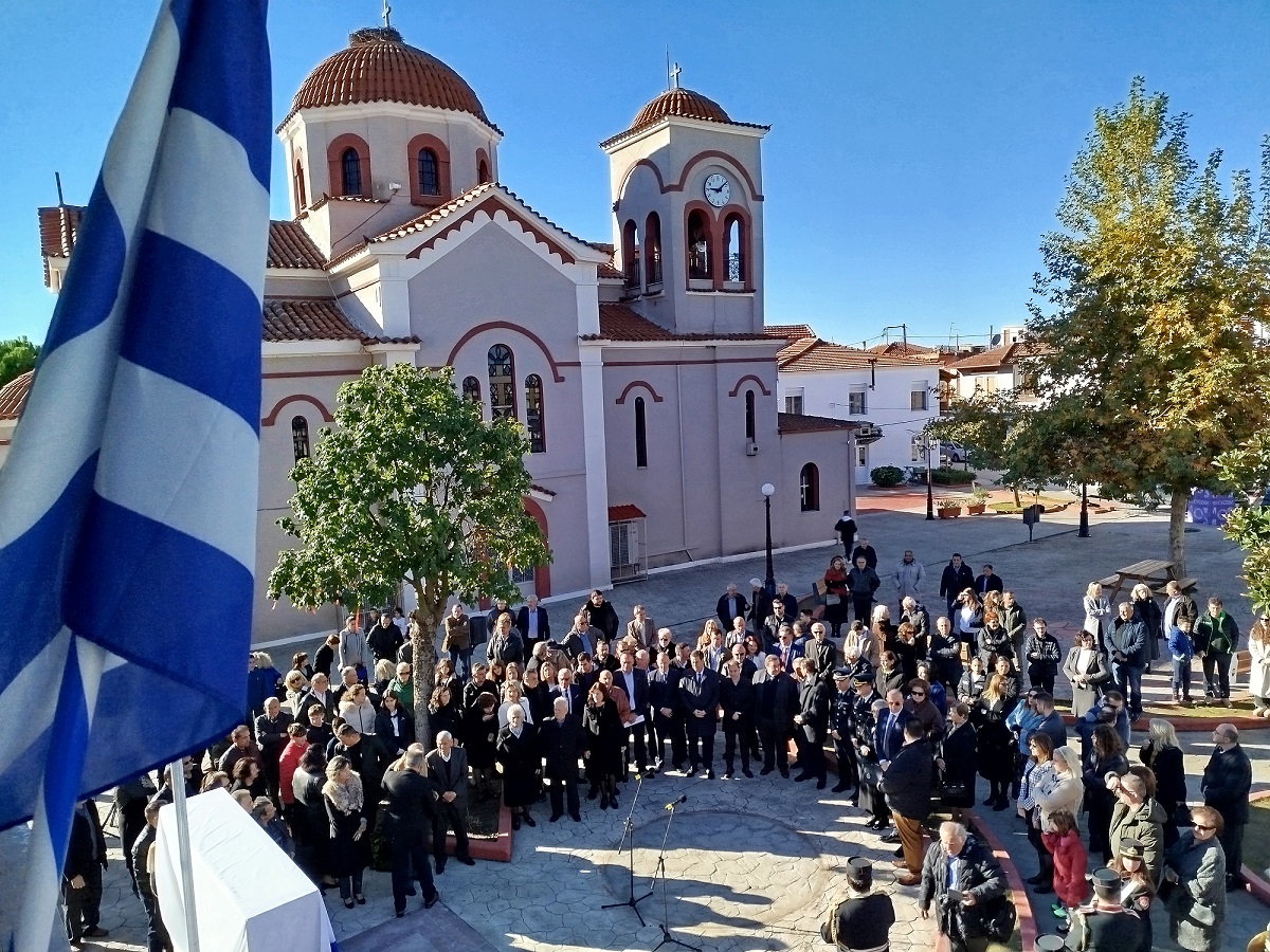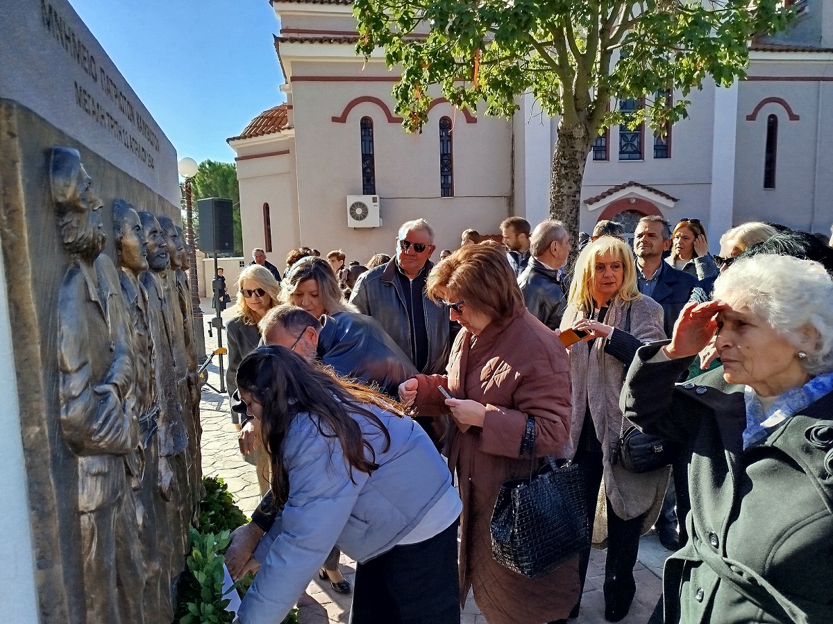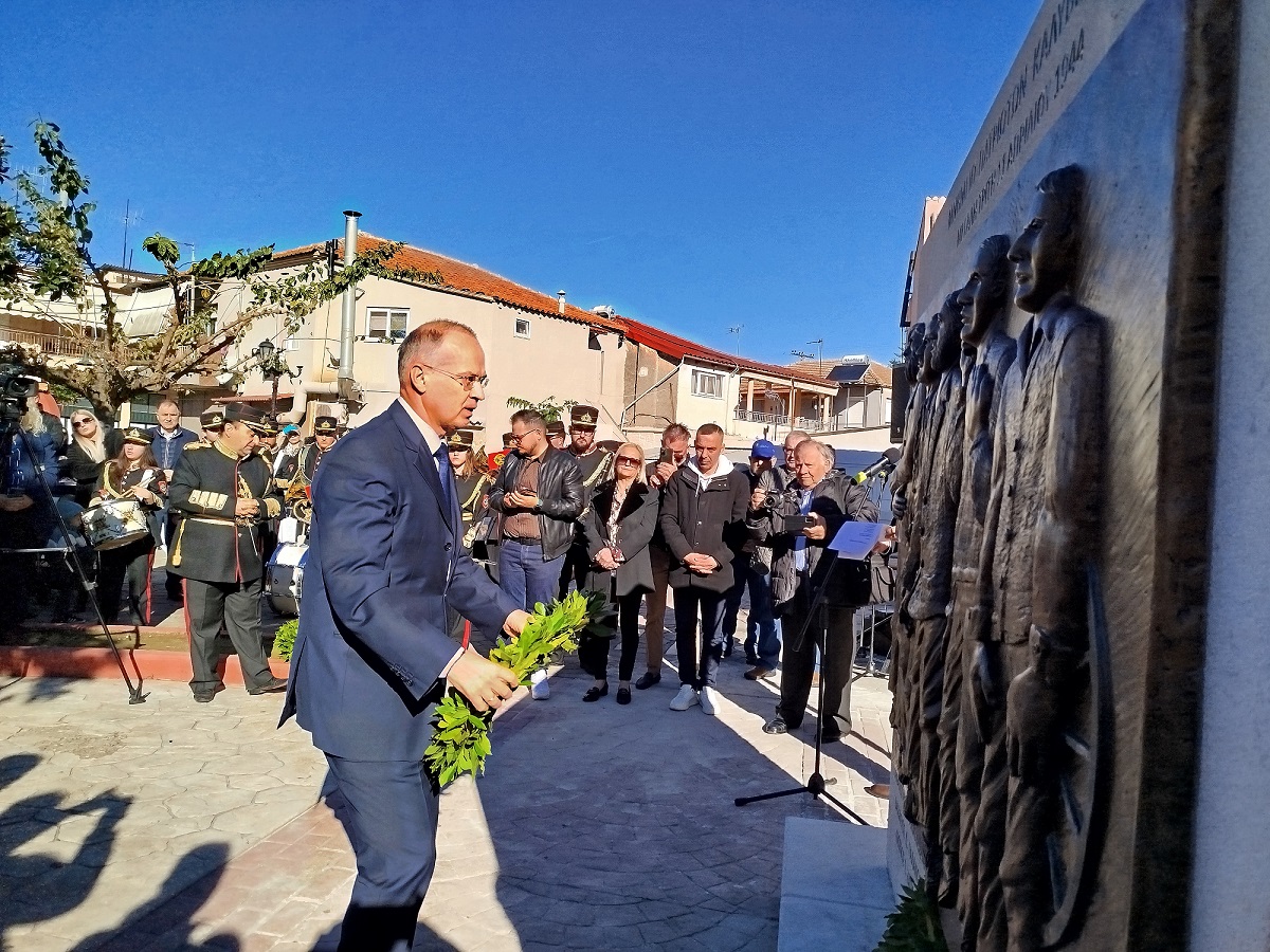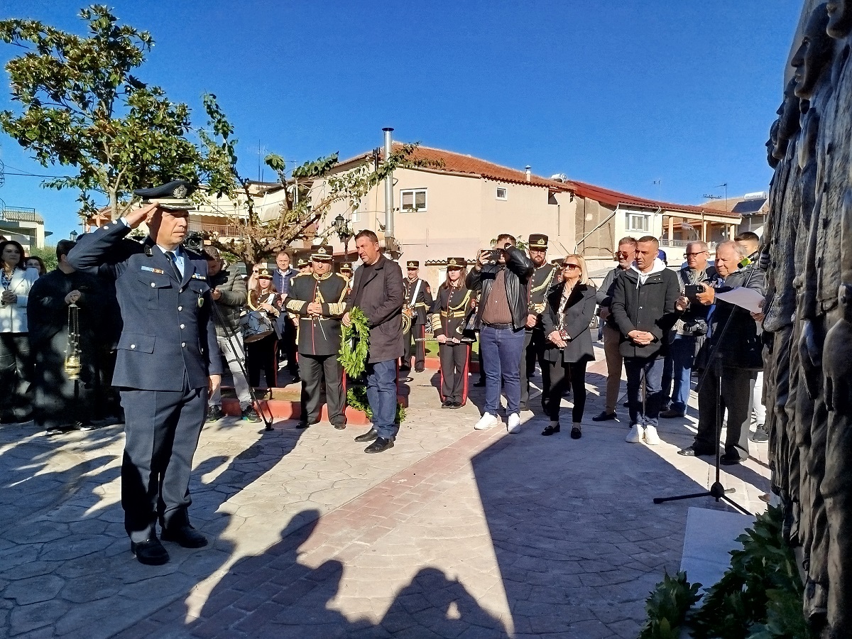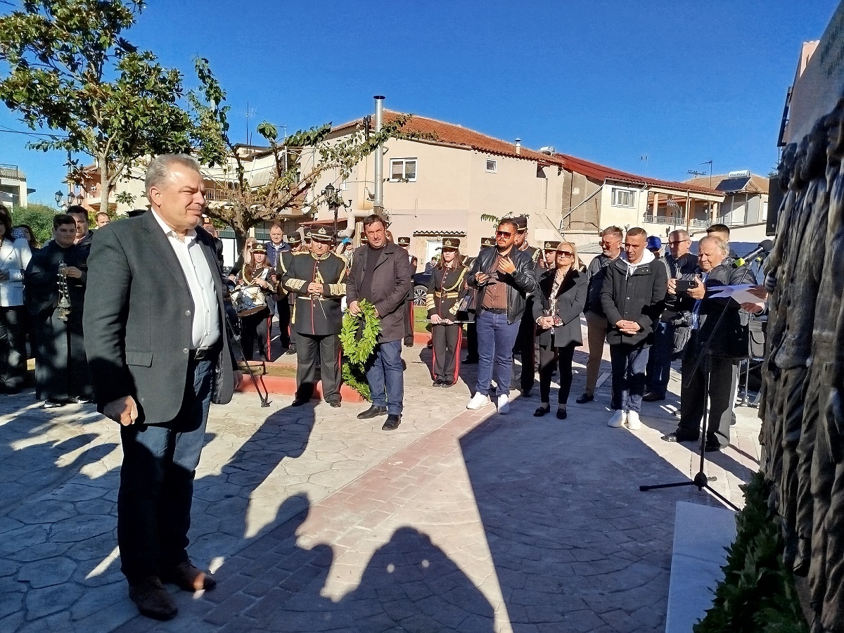 Η επίσημη Τελετή Αποκαλυπτηρίων του Μνημείου και Επιμνημόσυνη δέηση προς τιμήν των συνολικά 12 εκτελεσθέντων Ελλήνων πατριωτών, μεταξύ αυτών και 5 Καλυβιωτών, στη Μεγάλη Χώρα, τη Μεγάλη Τρίτη του 1944 από τους Γερμανούς κατακτητές, πραγματοποιήθηκε σήμερα Κυριακή 24 Νοεμβρίου 2024 στην πλατεία Καλυβίων Αγρινίου, παρουσία των επισήμων αρχών, σωμάτων ασφαλείας, συγγενών των θυμάτων και πλήθους κόσμου.