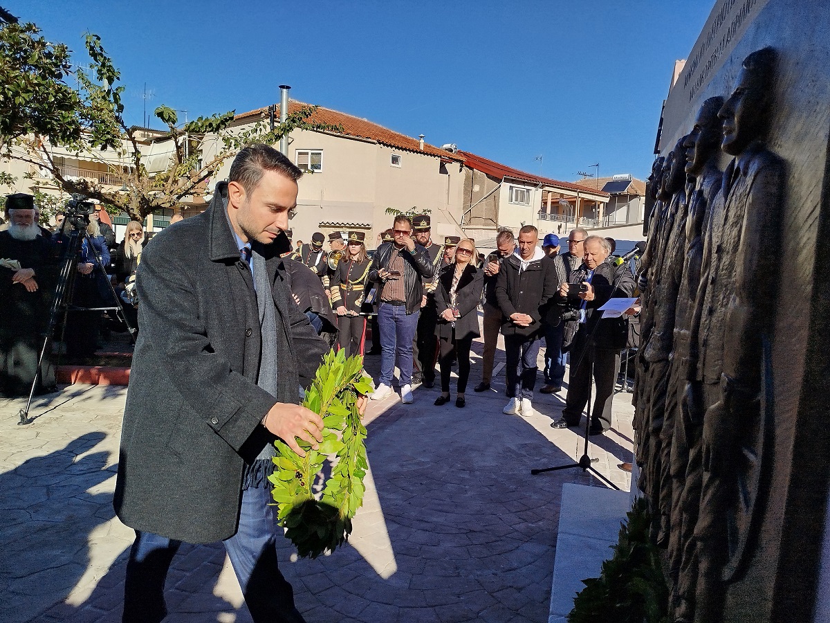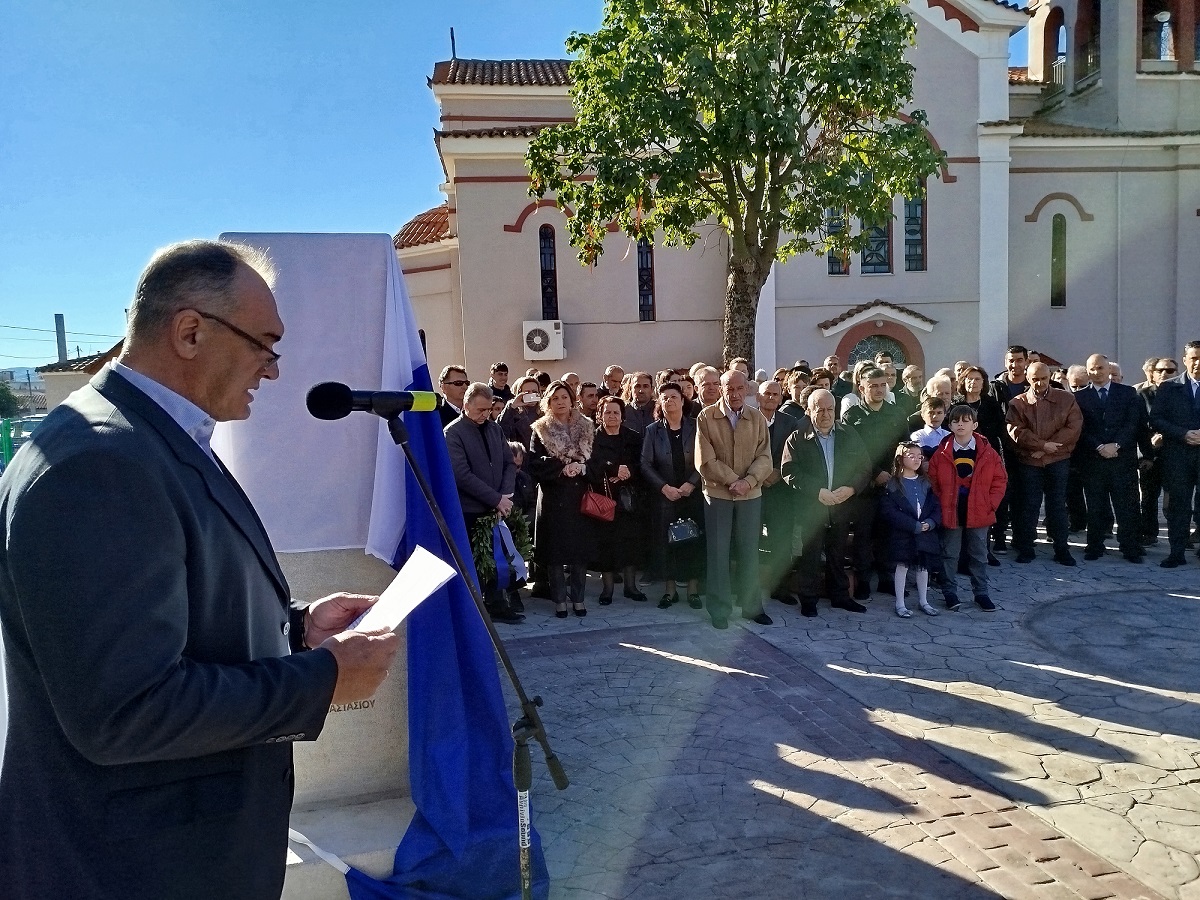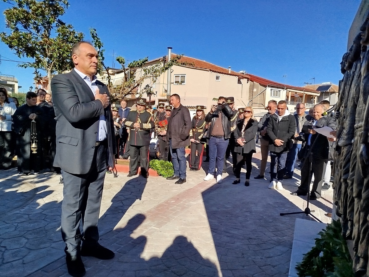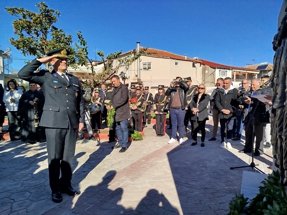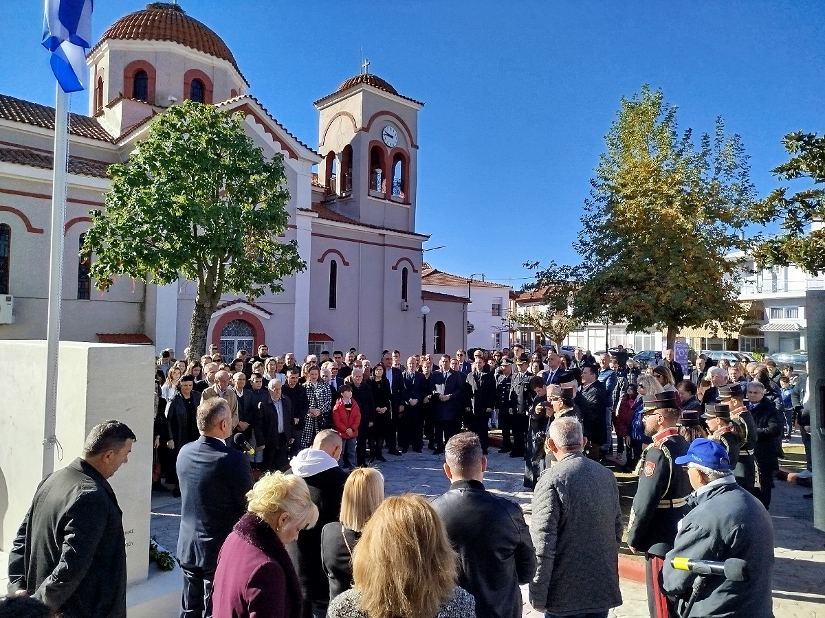 Η επίσημη Τελετή Αποκαλυπτηρίων του Μνημείου και Επιμνημόσυνη δέηση προς τιμήν των συνολικά 12 εκτελεσθέντων Ελλήνων πατριωτών, μεταξύ αυτών και 5 Καλυβιωτών, στη Μεγάλη Χώρα, τη Μεγάλη Τρίτη του 1944 από τους Γερμανούς κατακτητές, πραγματοποιήθηκε σήμερα Κυριακή 24 Νοεμβρίου 2024 στην πλατεία Καλυβίων Αγρινίου, παρουσία των επισήμων αρχών, σωμάτων ασφαλείας, συγγενών των θυμάτων και πλήθους κόσμου.