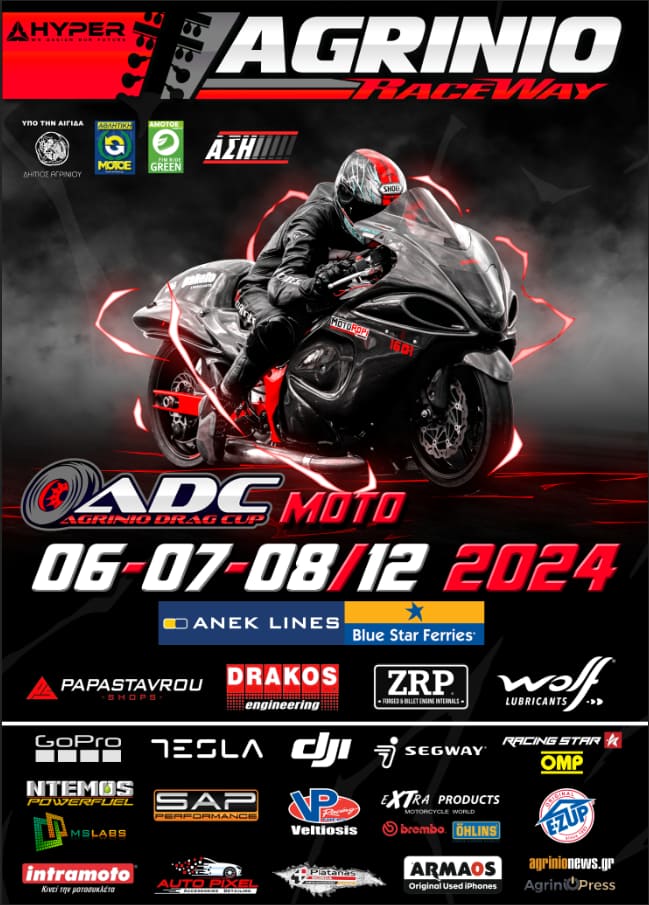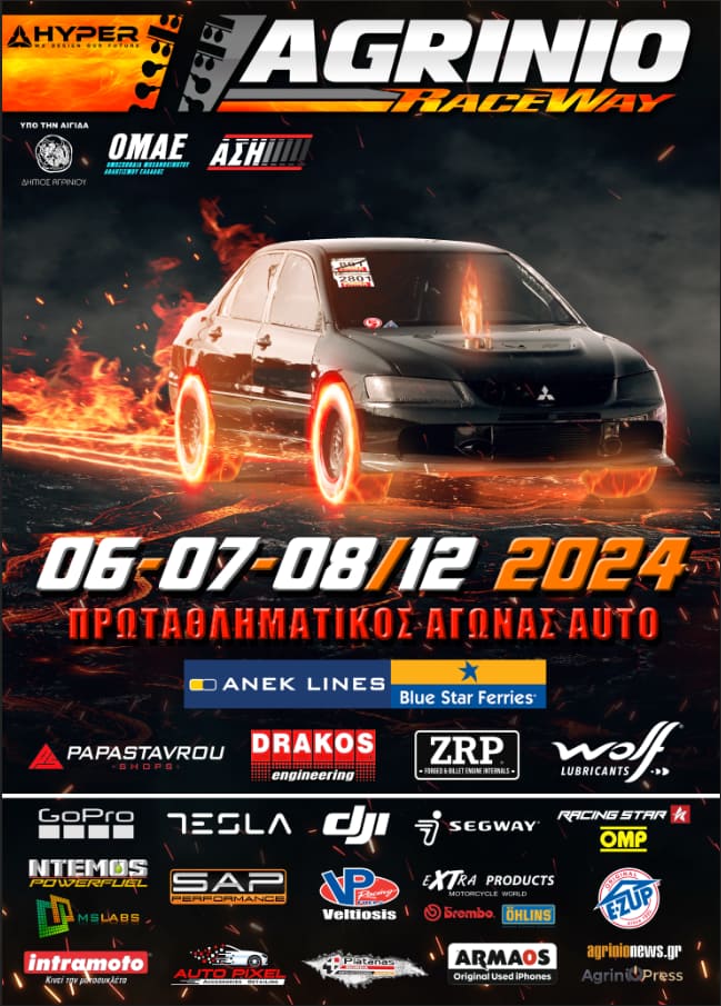 Το τριήμερο 6, 7 και 8/12 στην αγωνιστική πίστα Agrinio Raceway, στο στρατιωτικό αεροδρόμιο Αγρινίου, θα γίνει ο τελευταίος αγώνας Dragster για το Agrinio Raceway Cup 2024 auto-moto o οποίος θα μετράει και στο Πανελλήνιο Πρωτάθλημα auto.