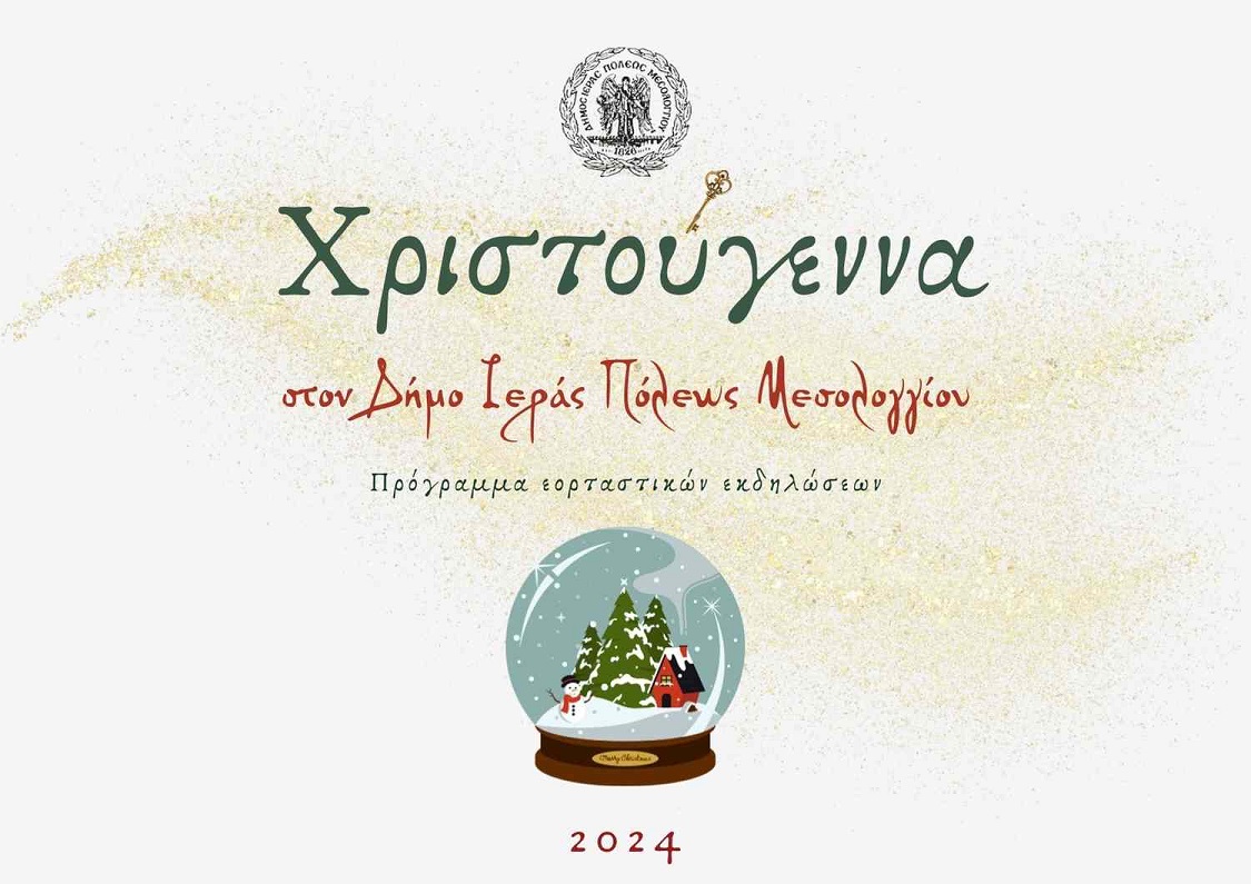 Ο Δήμος Ιερής Πόλης Μεσολογγίου προσκαλεί να «διαδώσετε το μήνυμα της αγάπης, της χαράς και της αισιοδοξίας, συμμετέχοντας στο πλούσιο πρόγραμμα των Εορταστικών Εκδηλώσεων 2024 που θα πραγματοποιηθούν ολόκληρο τον Δεκέμβριο σε κάθε δημοτική ενότητα».